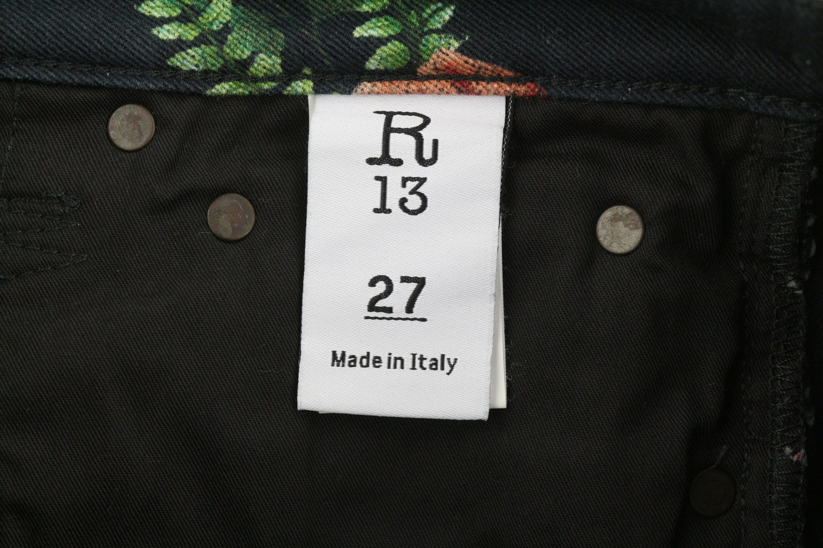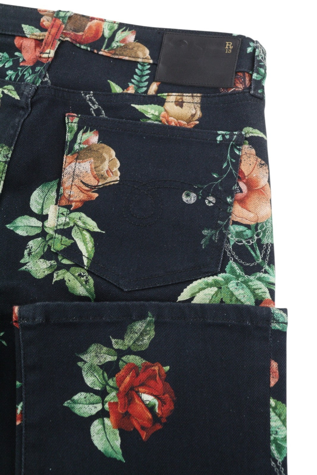 R13 Kick Fit Women Jeans 27 Useless Treasueres Floral Black Cropped Ankle