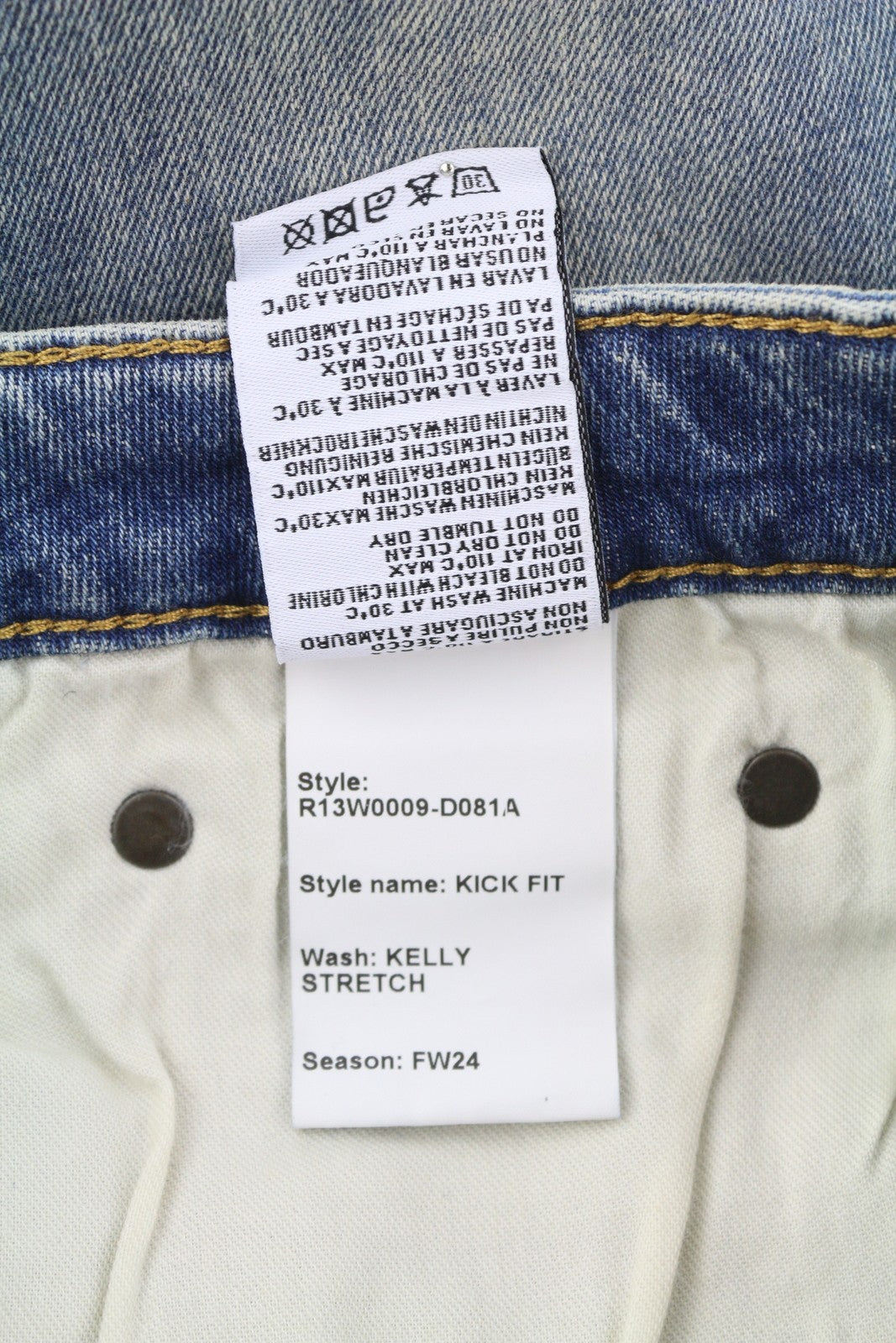 R13 Kick Fit Women Jeans 29 Kelly Stretch Whisker Fade Cropped RRP699