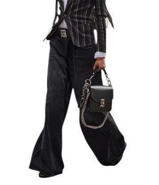 R13 Nico Wrap Women Jeans 27 Essex Black Washed Asymmetrical Front PS26 RRP790