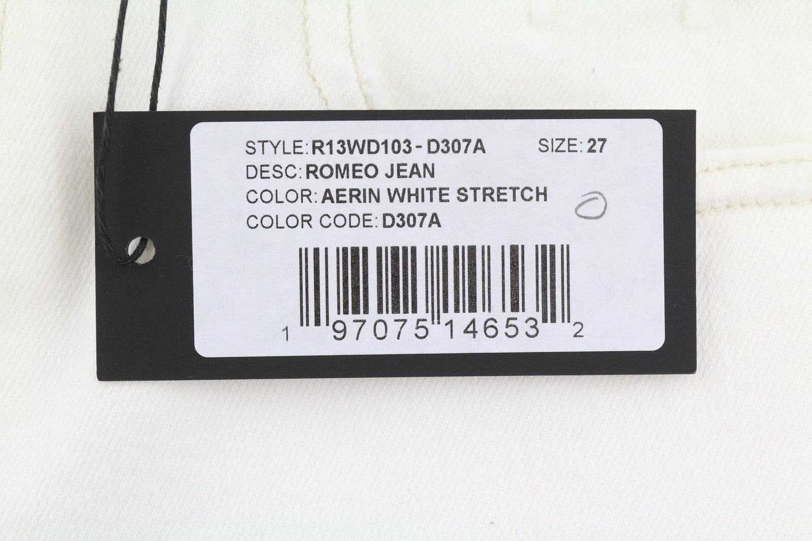 R13 Romeo Women Jeans 27 Aerin White Stretch Cropped Ankle Zip SS25 RRP699