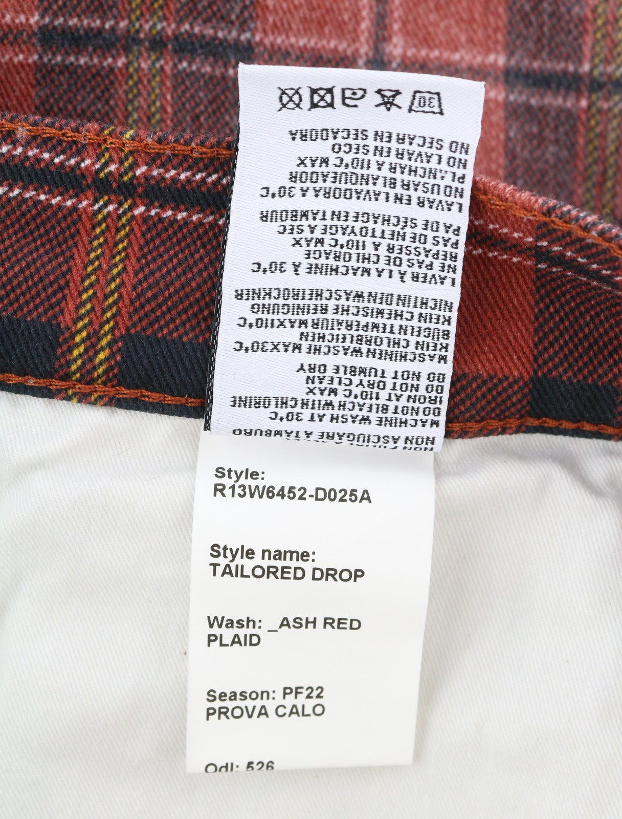 R13 Tailored Drop Women Trousers 27 Ash Red Plaid Cropped Ankle Drop Crotch