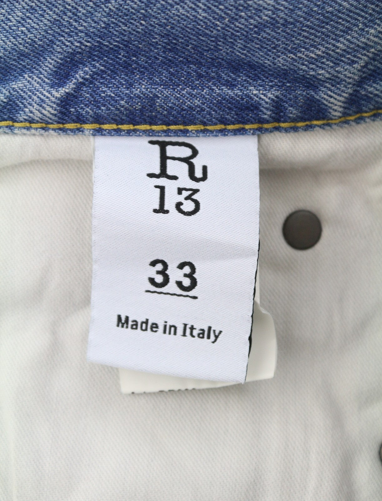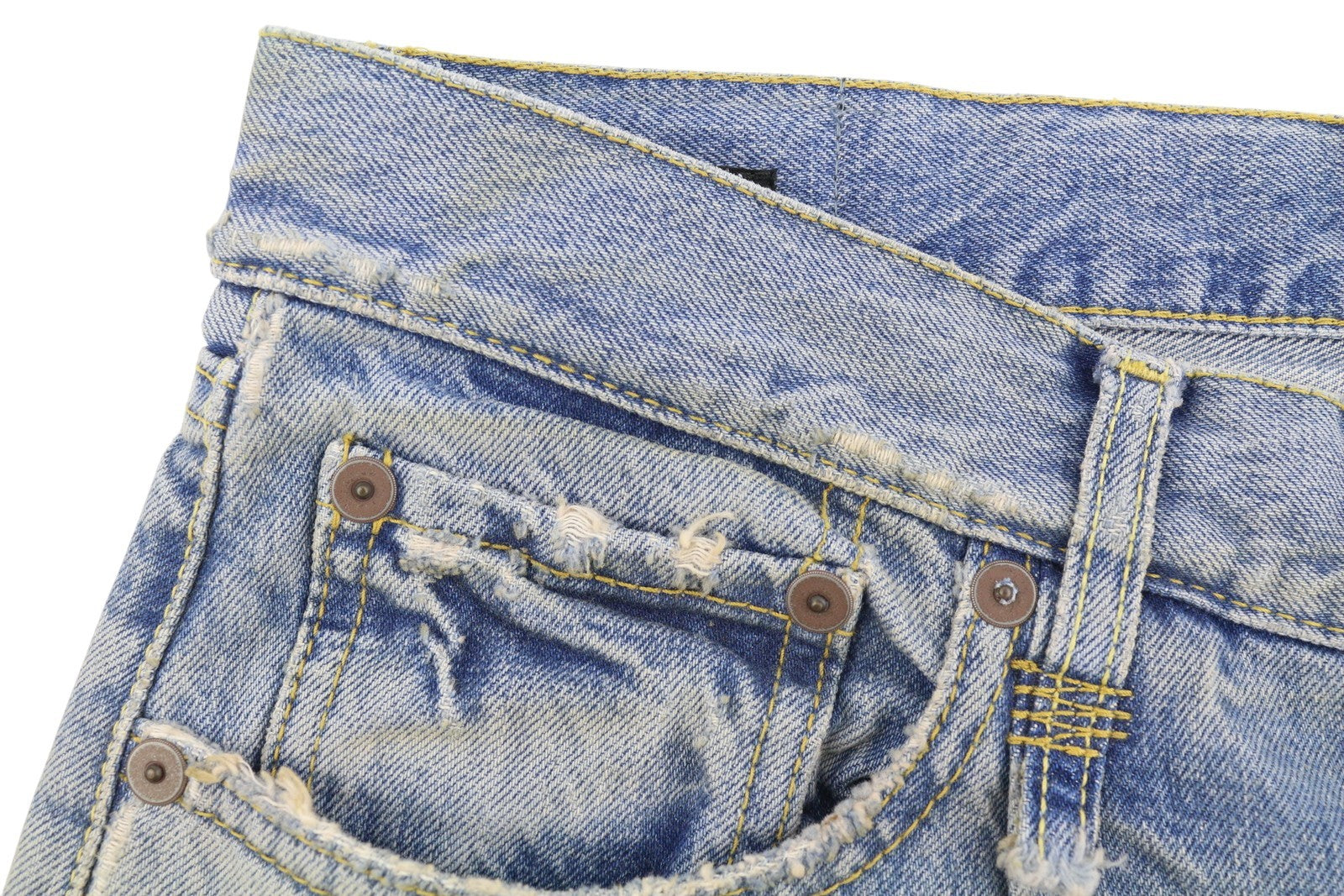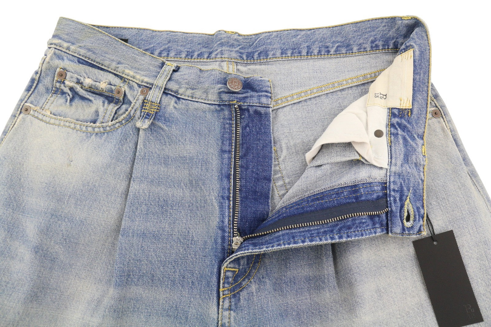 R13 Wayne vyriški džinsai su sąnariais ant kelių, 33 Merrin mėlyni, išblukę ūsai, klostuoti PF25