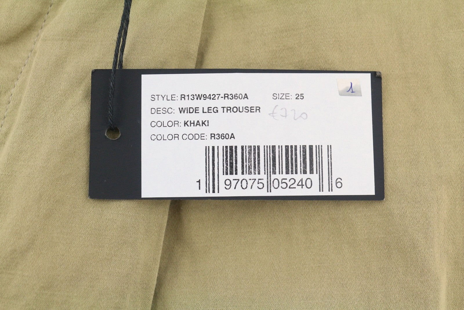 R13 Wide Leg Women Trousers 25 Khaki Linen Blend Pleated Button Fly RRP699