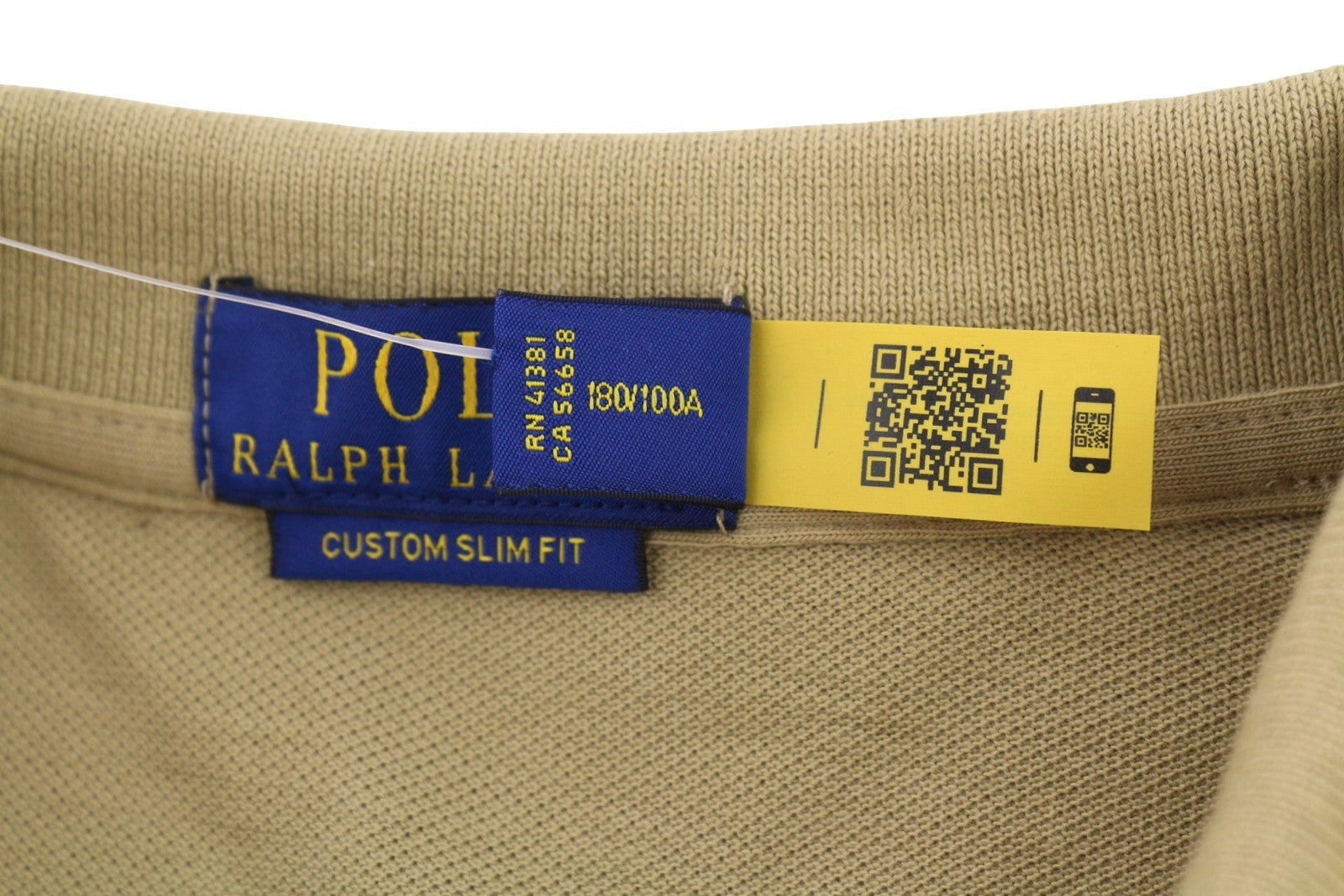 RALPH LAUREN Custom Slim Fit Men Polos L Beige Embroidered Logo Short Sleeve