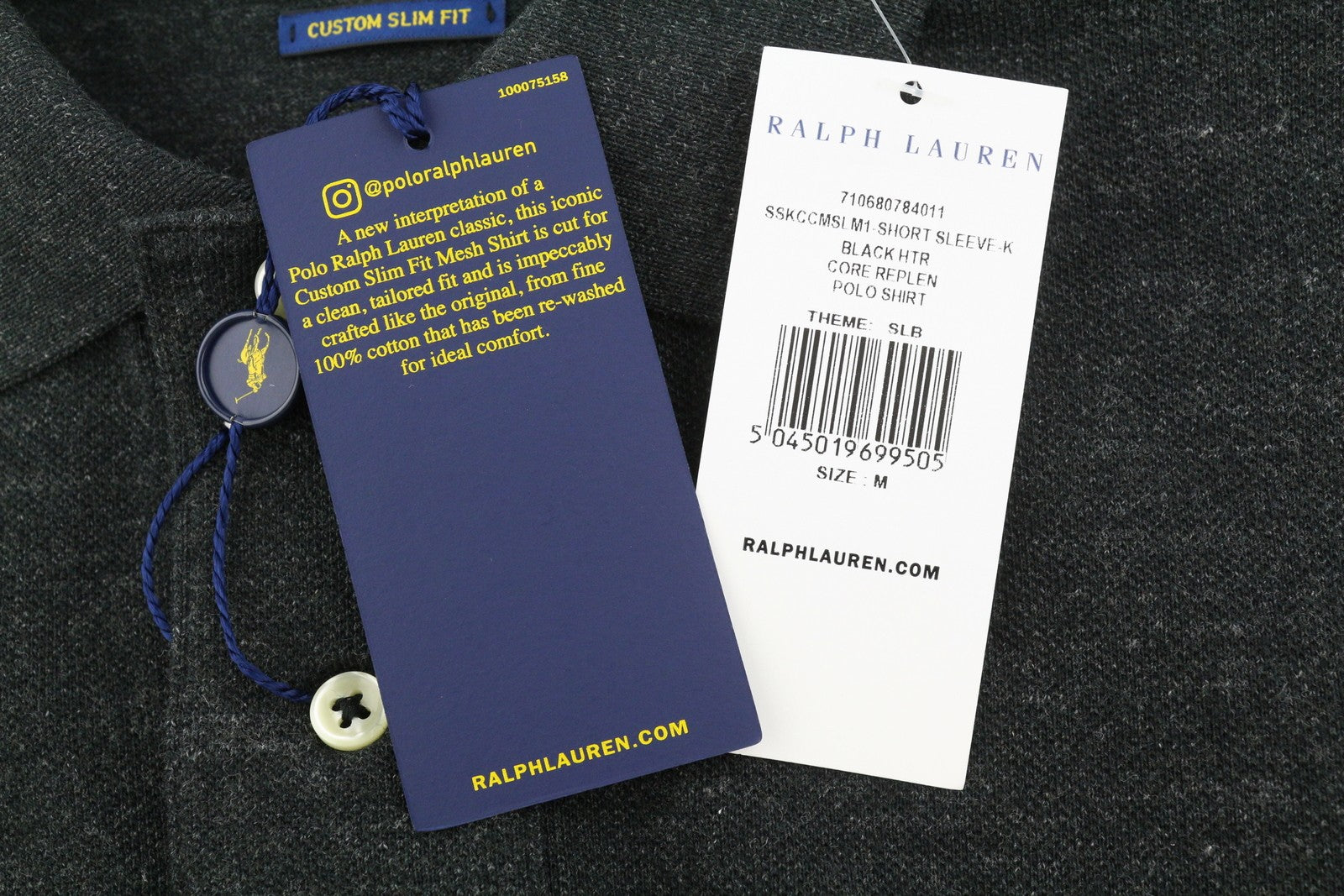 RALPH LAUREN Custom Slim Fit Men Polos M Black Melange Cotton Logo Short Sleeved