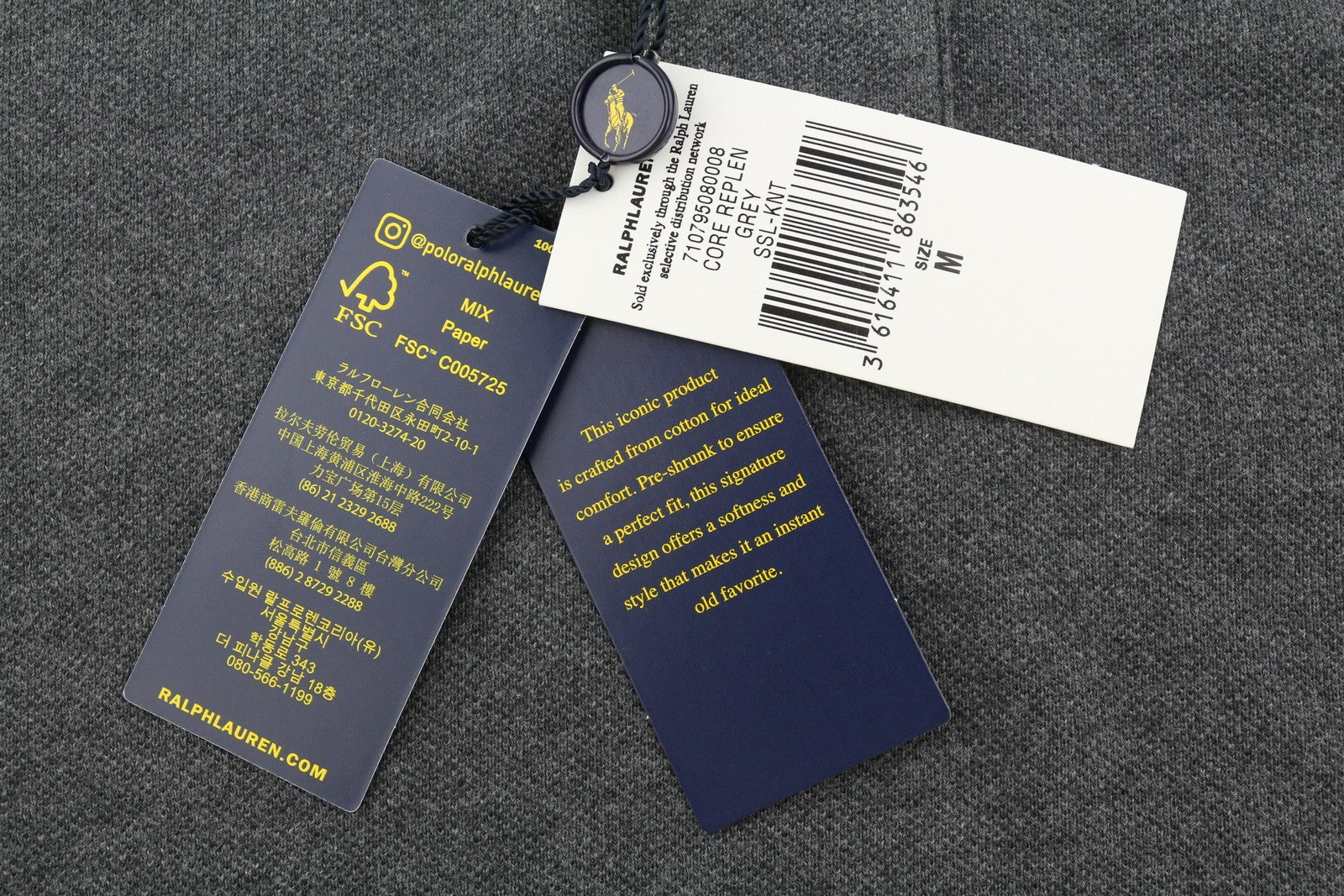 RALPH LAUREN Slim Fit Men Polos M Dark Grey Melange Cotton Logo Short Sleeve