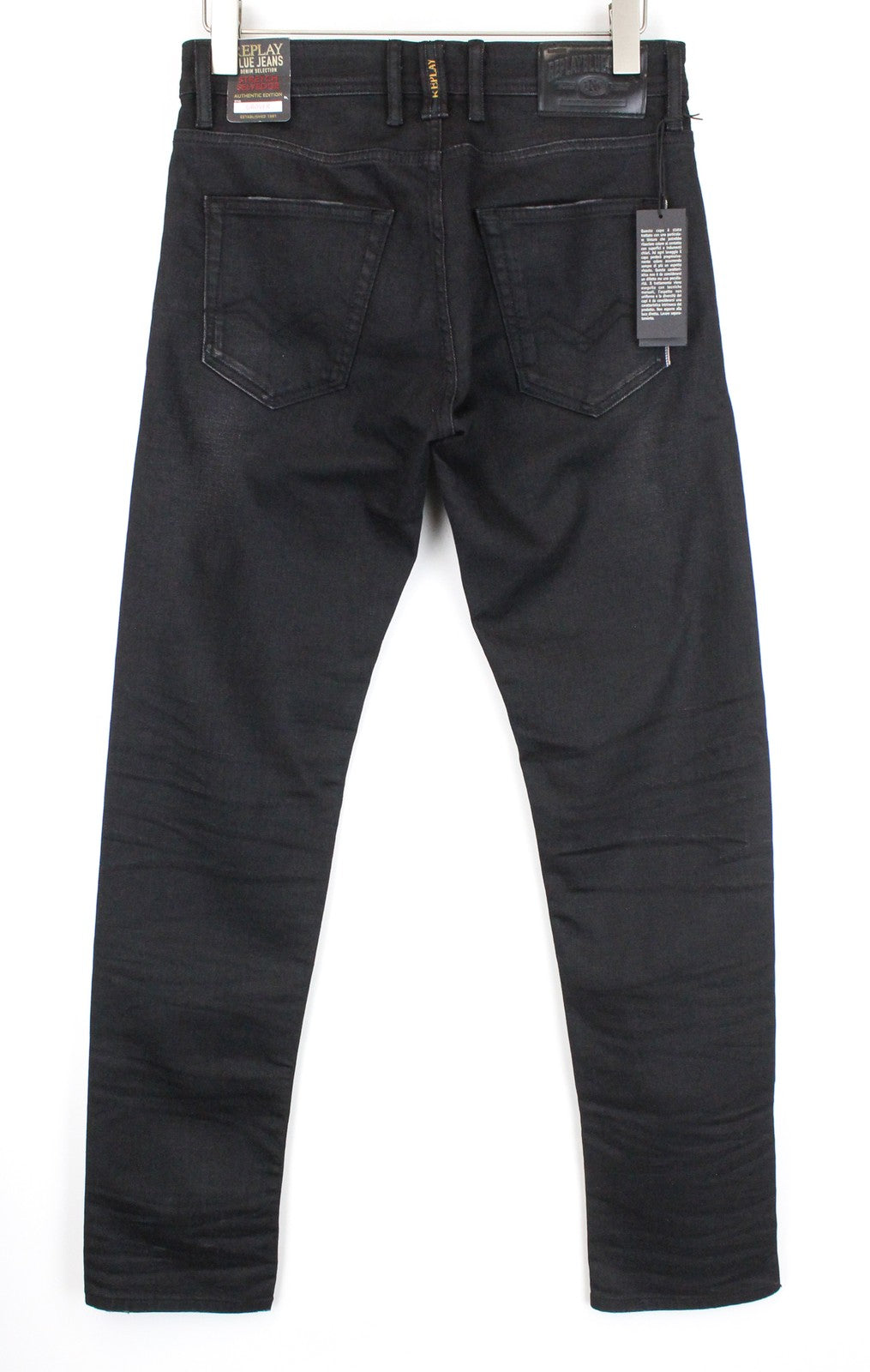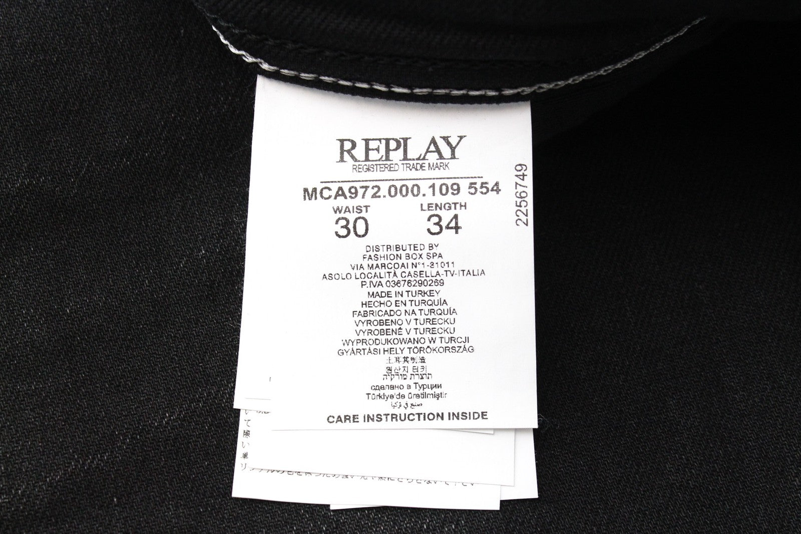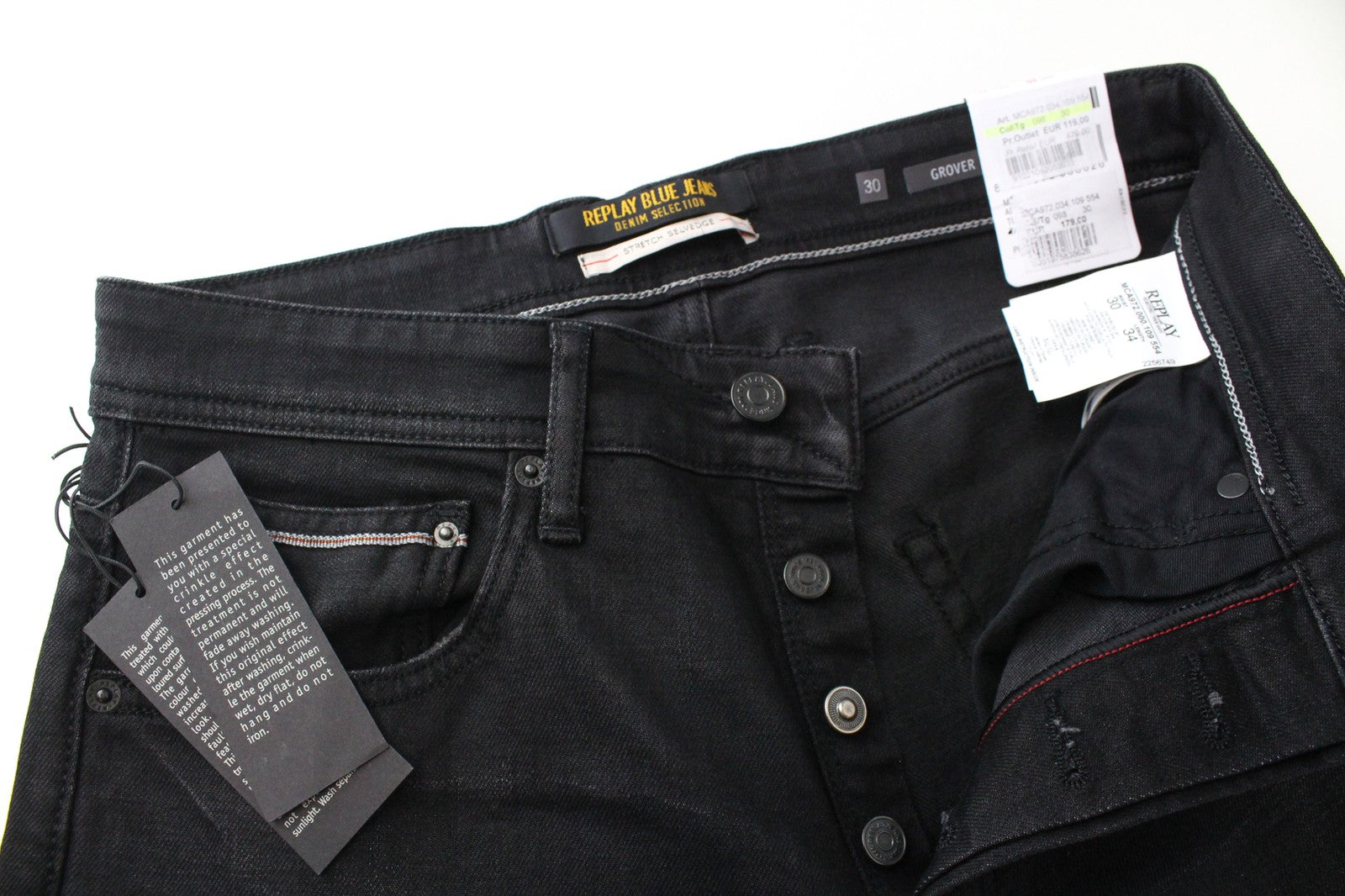 REPLAY Grover W30/L34 juodi, tiesūs, tamprūs, medvilniniai džinsai su užsegimu, skalbinių spalvos