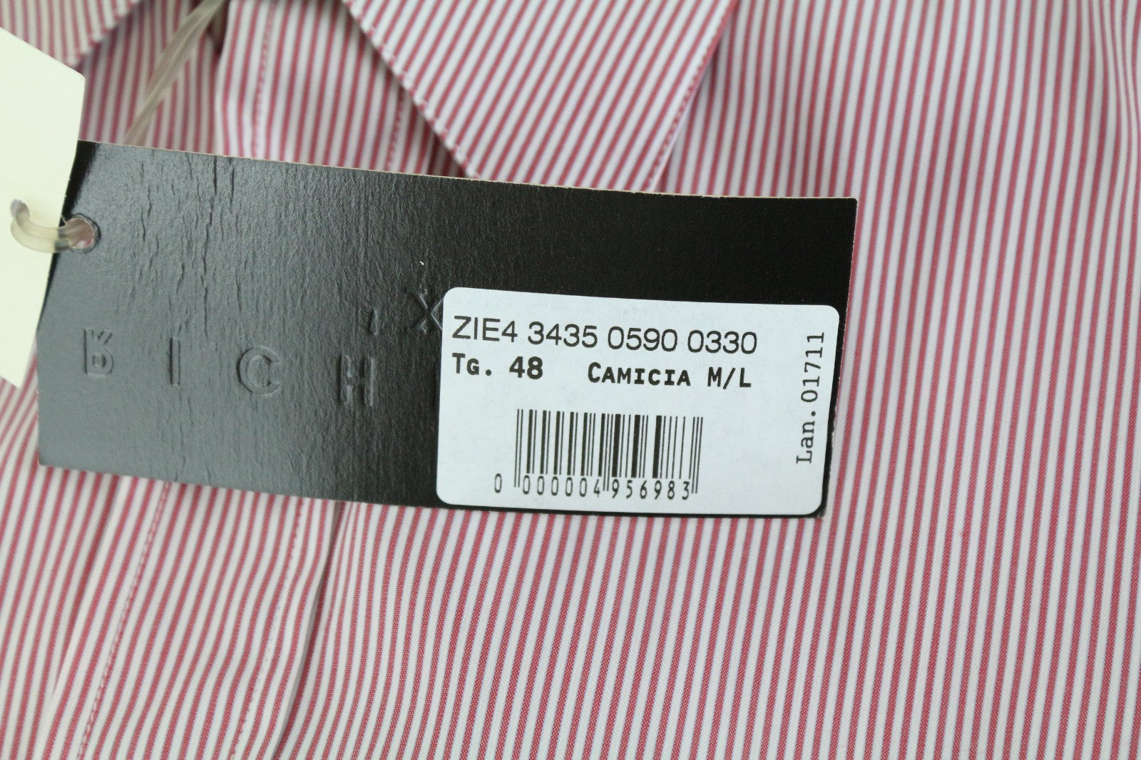 RICHMOND  Men Shirt 48 Red Cotton Blend Stretch Striped Short Sleeve Button-Up