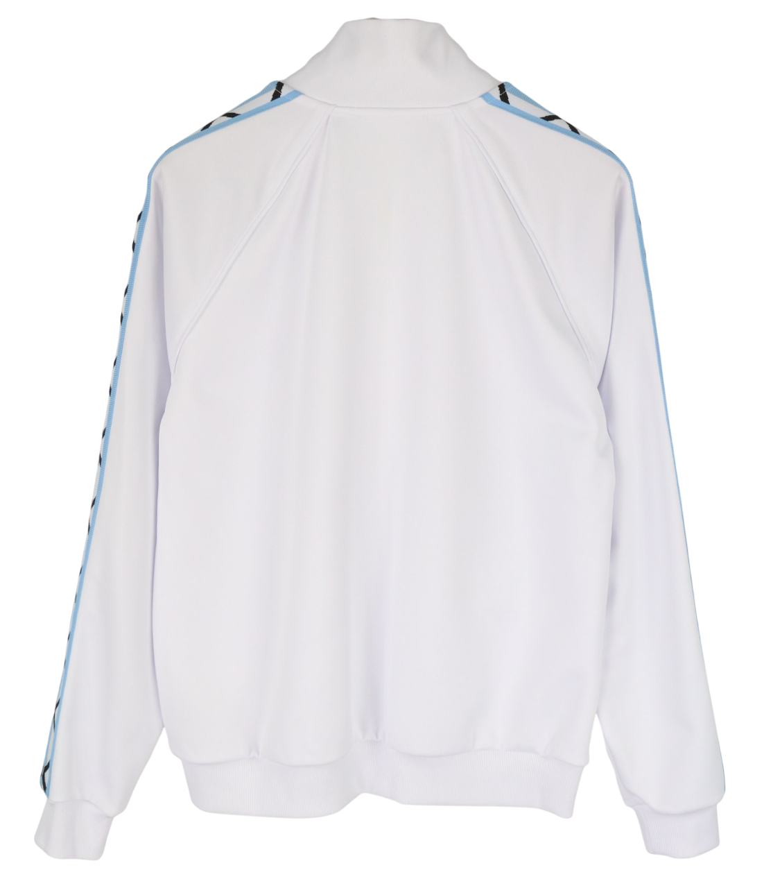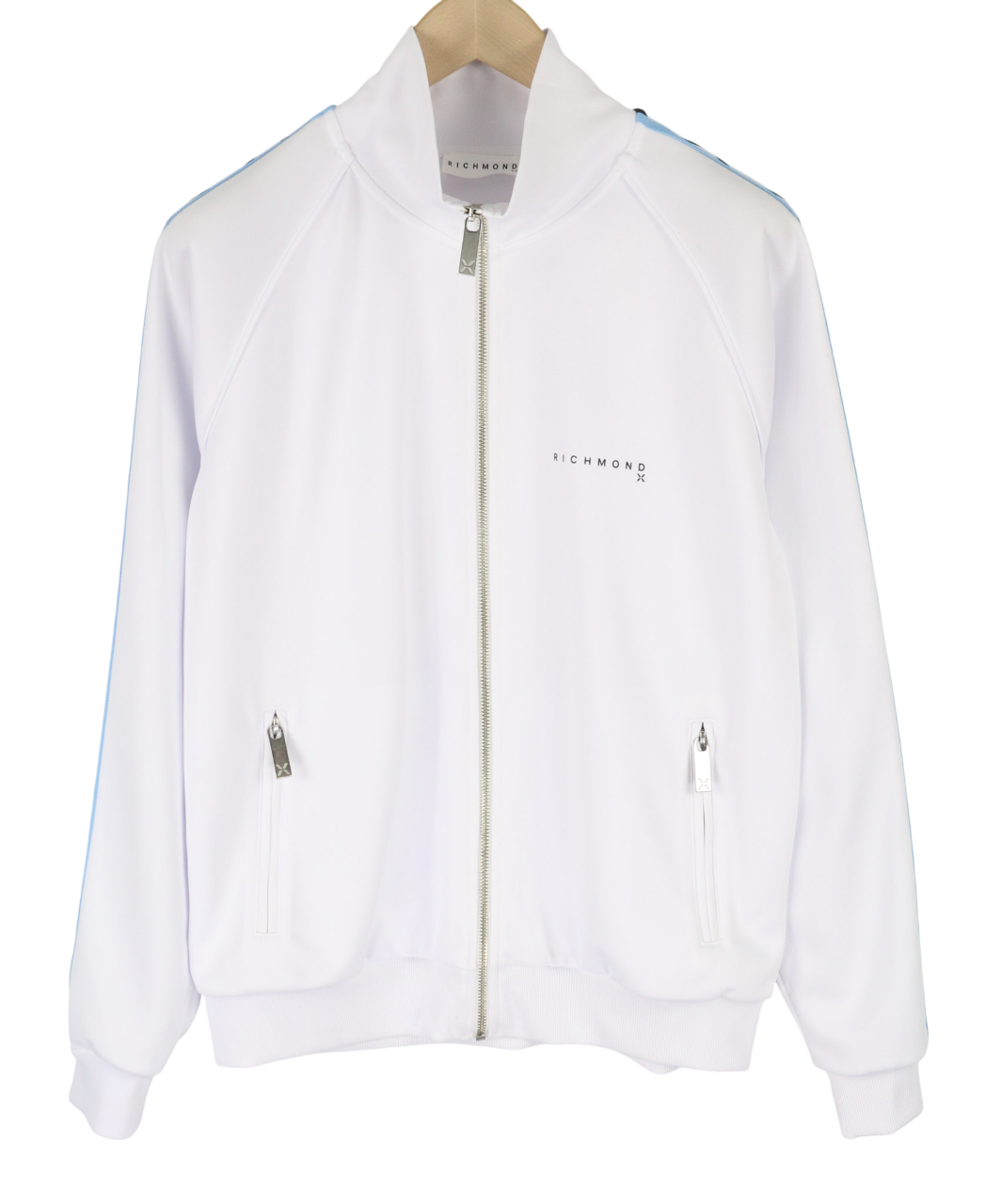 RICHMOND vyriškas sportinis kostiumas M, baltas, dviejų dalių, su užtraukiamais užtrauktukais, logotipu ir elastingu juosmeniu.