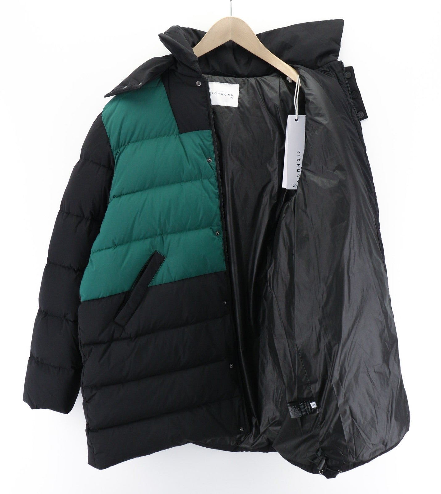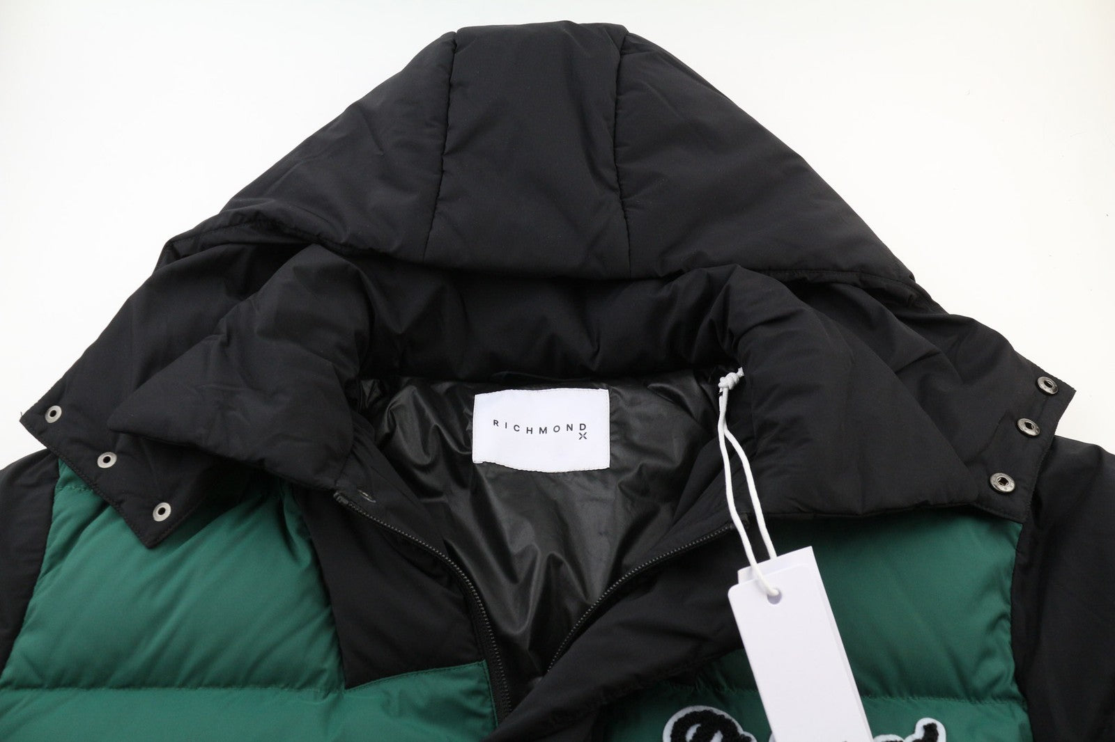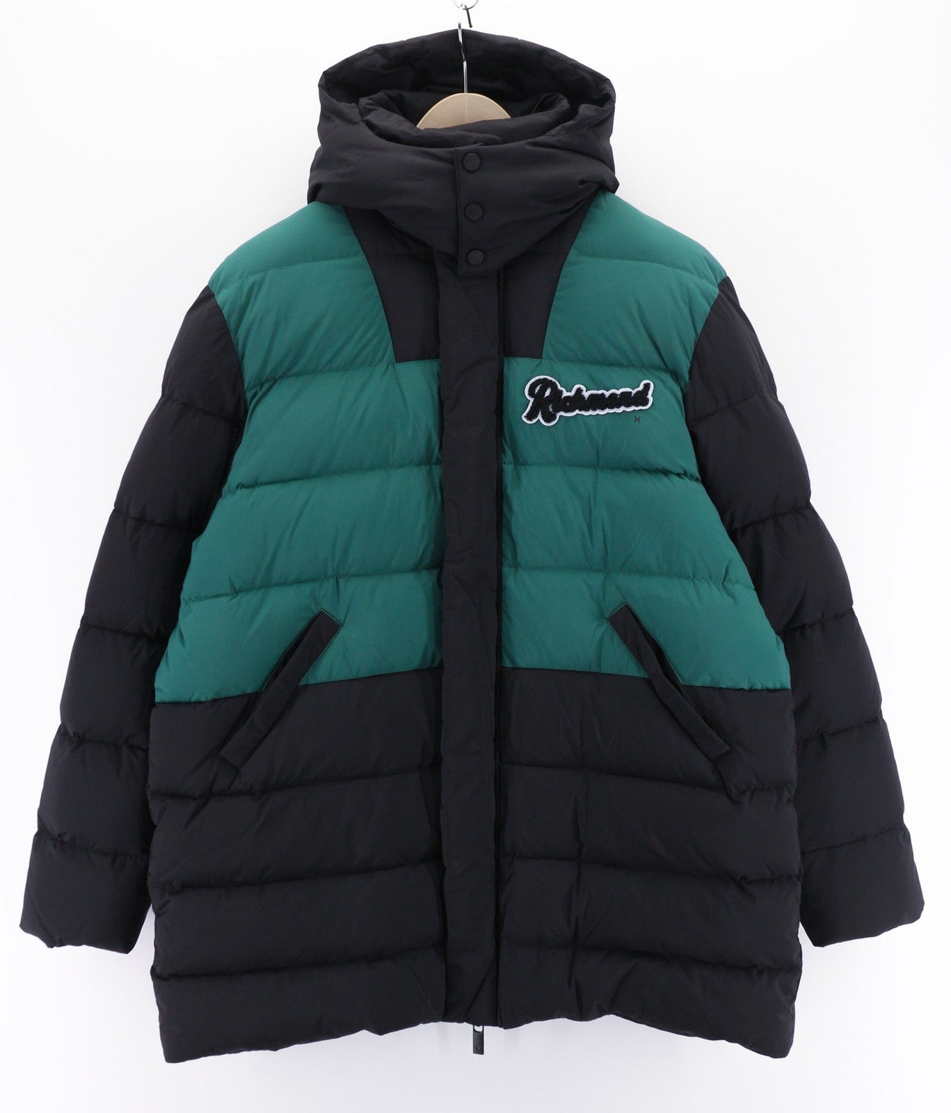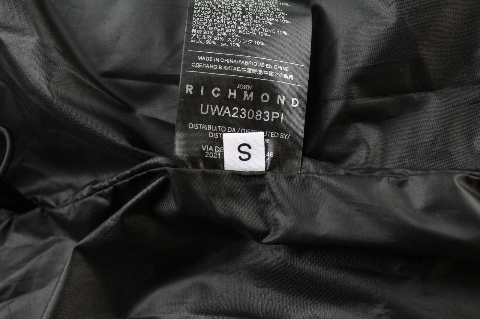 RICHMOND moteriška ilga pūkinė striukė S dydžio, dygsniuota, su gobtuvu, pašiltinta, juoda, pūsta logotipu