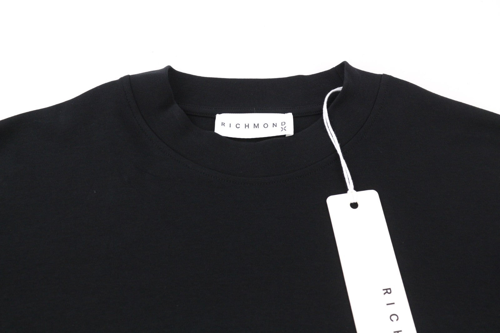 RICHMOND moteriški marškinėliai S dydžio juodi su dideliu apvaliu raštu ir tampriu medvilniniu logotipu