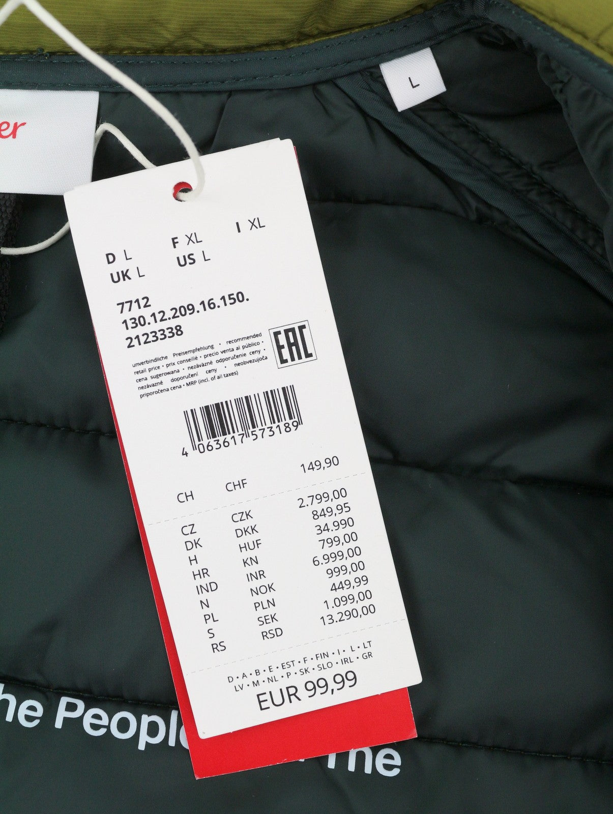 S.OLIVER Men Jacket L Green High Neck Padded Quilted Full Zip Lightweight