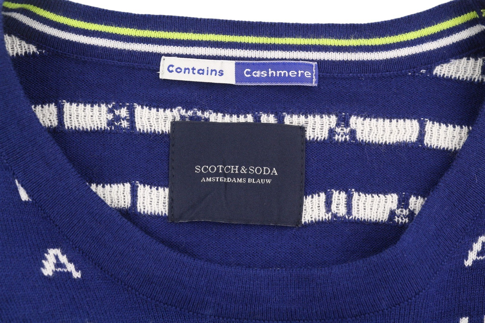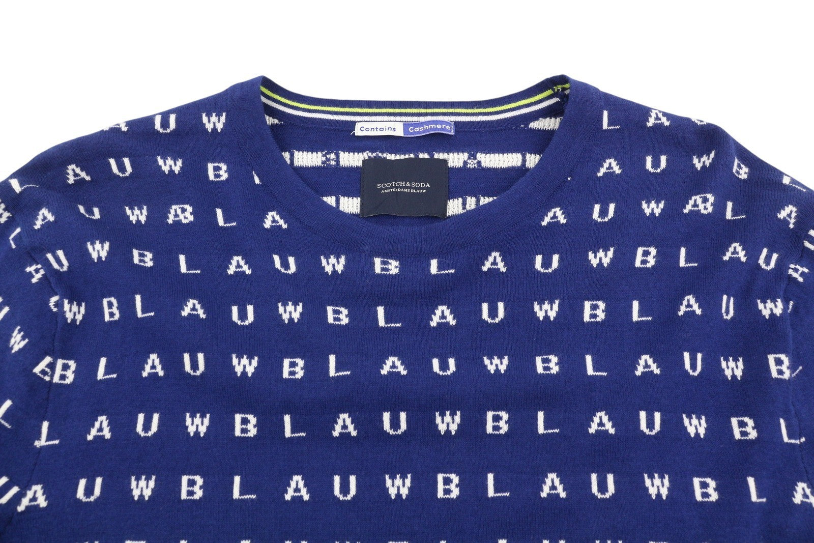 SCOTCH & SODA Men Jumper M Blue All-Over Logo Print Tight-Knit Cotton Pull On