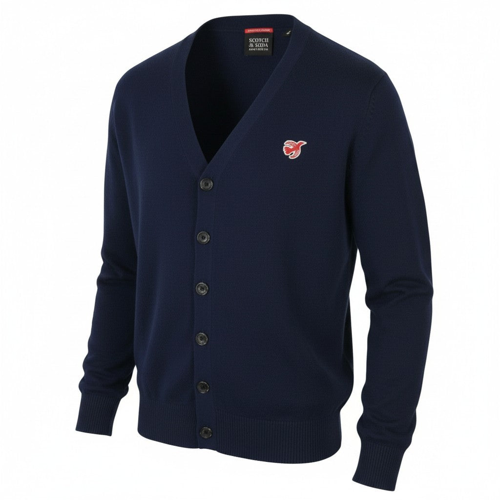SCOTCH & SODA Men Jumper M Dark Blue Merino Wool Blend Knit Oversized Cardigan