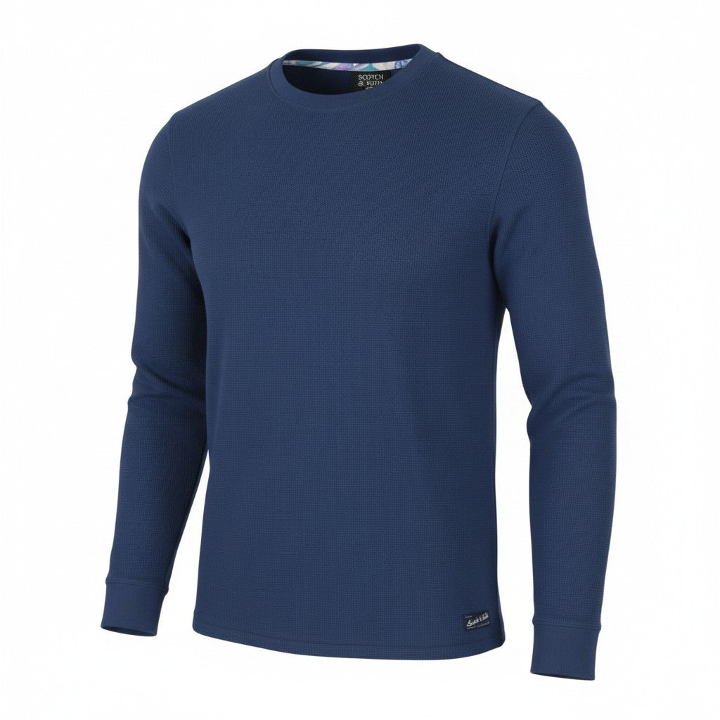 SCOTCH & SODA Men Sweatshirt M Dark Blue Textured Crew Neck Cotton Pull On