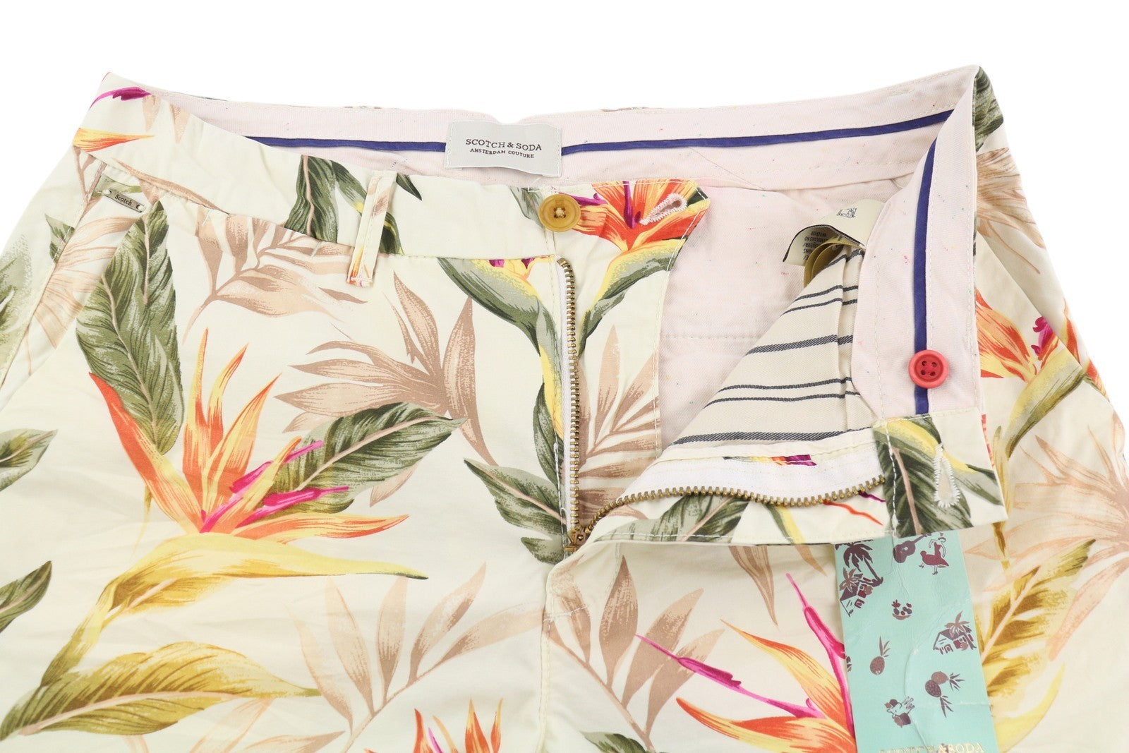 SCOTCH & SODA Men's Shorts W30 Multicolour Leaf Print Chino Casual Pockets