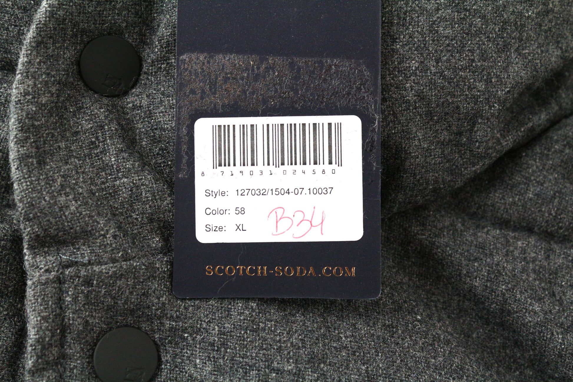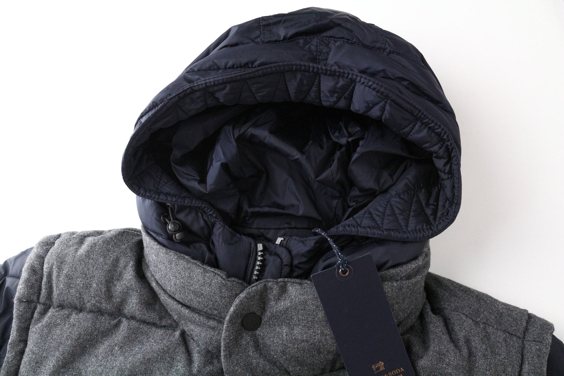 SCOTCH & SODA vyriška XL dydžio tamsiai pilka dygsniuota vilnos mišinio striukė su gobtuvu ir užtrauktuku