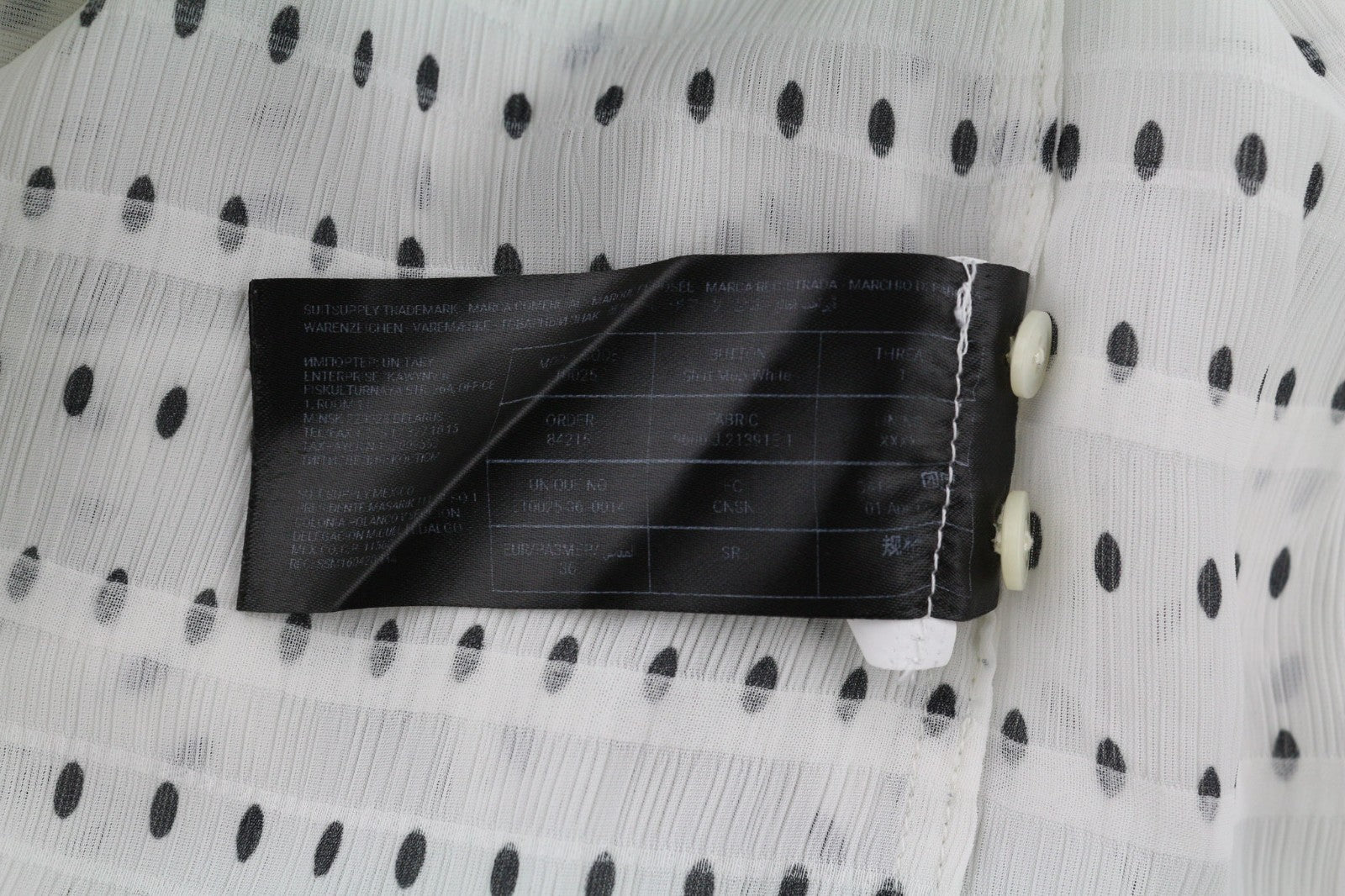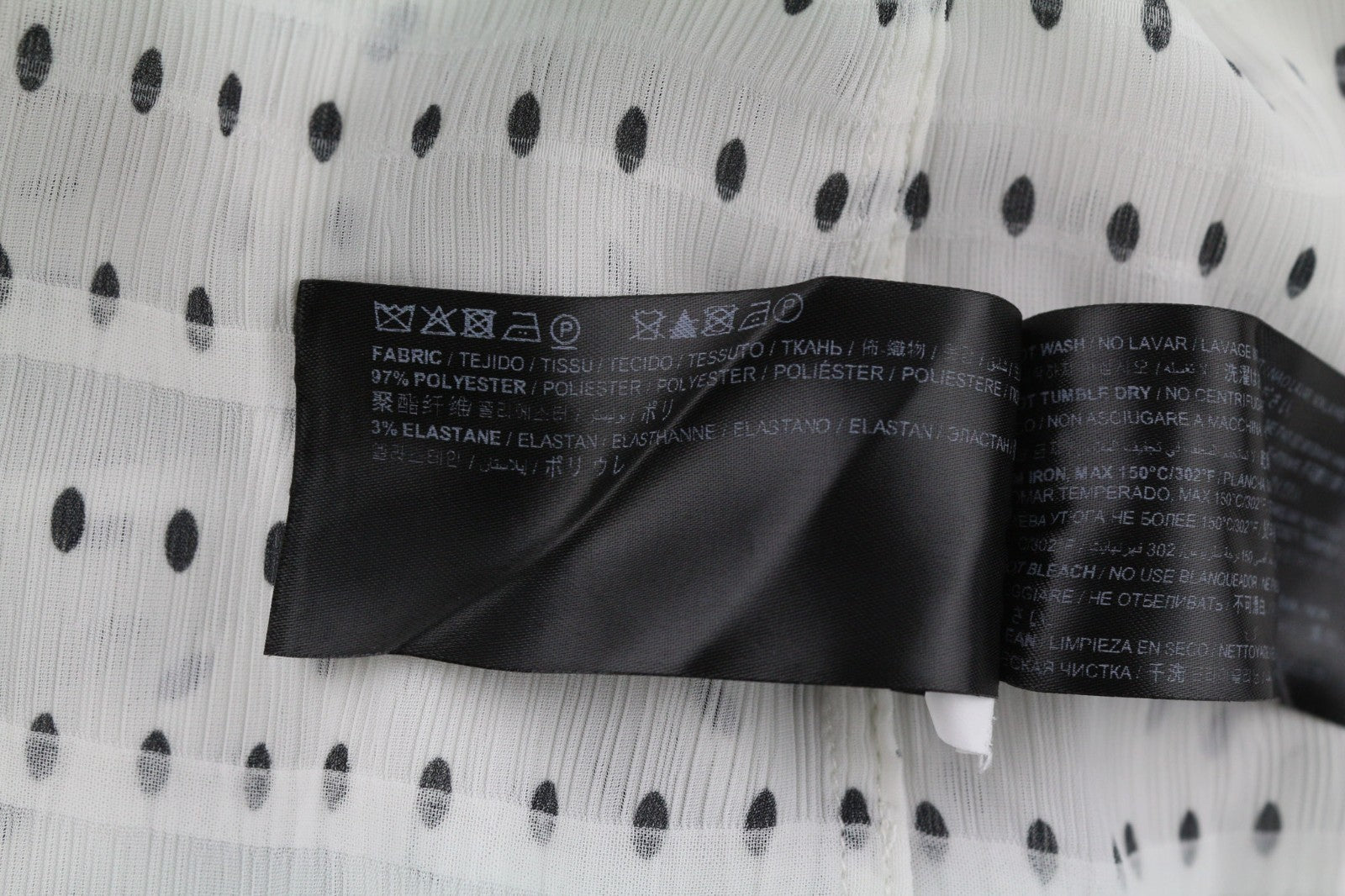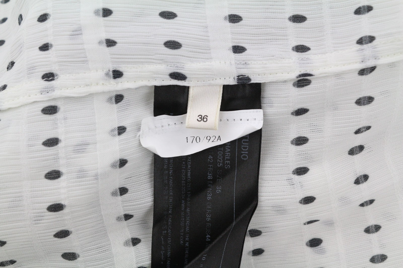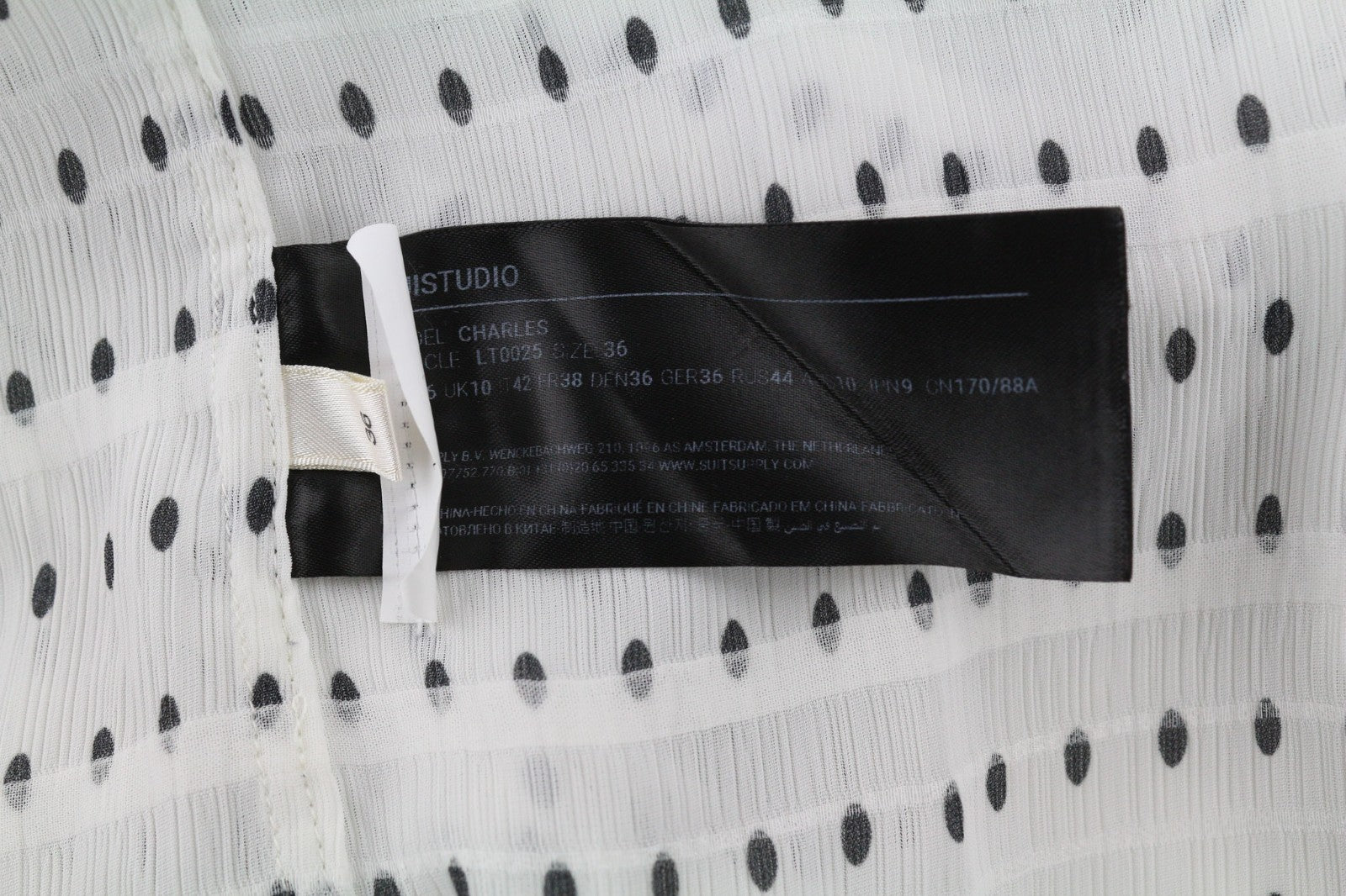 SUISTUDIO Charles moteriški balti taškuoti tamprūs marškinėliai ilgomis rankovėmis, dydis UK10