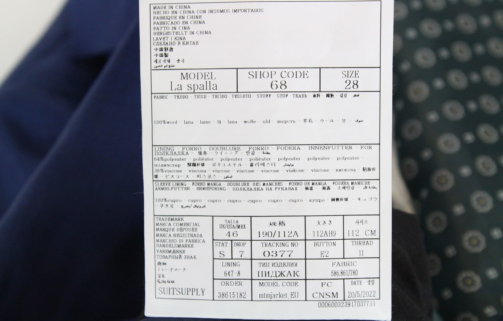 SUITSUPPLY La Spalla vyriškas švarkas UK46S mėlynas vilnonis švarkas su smailia apykakle