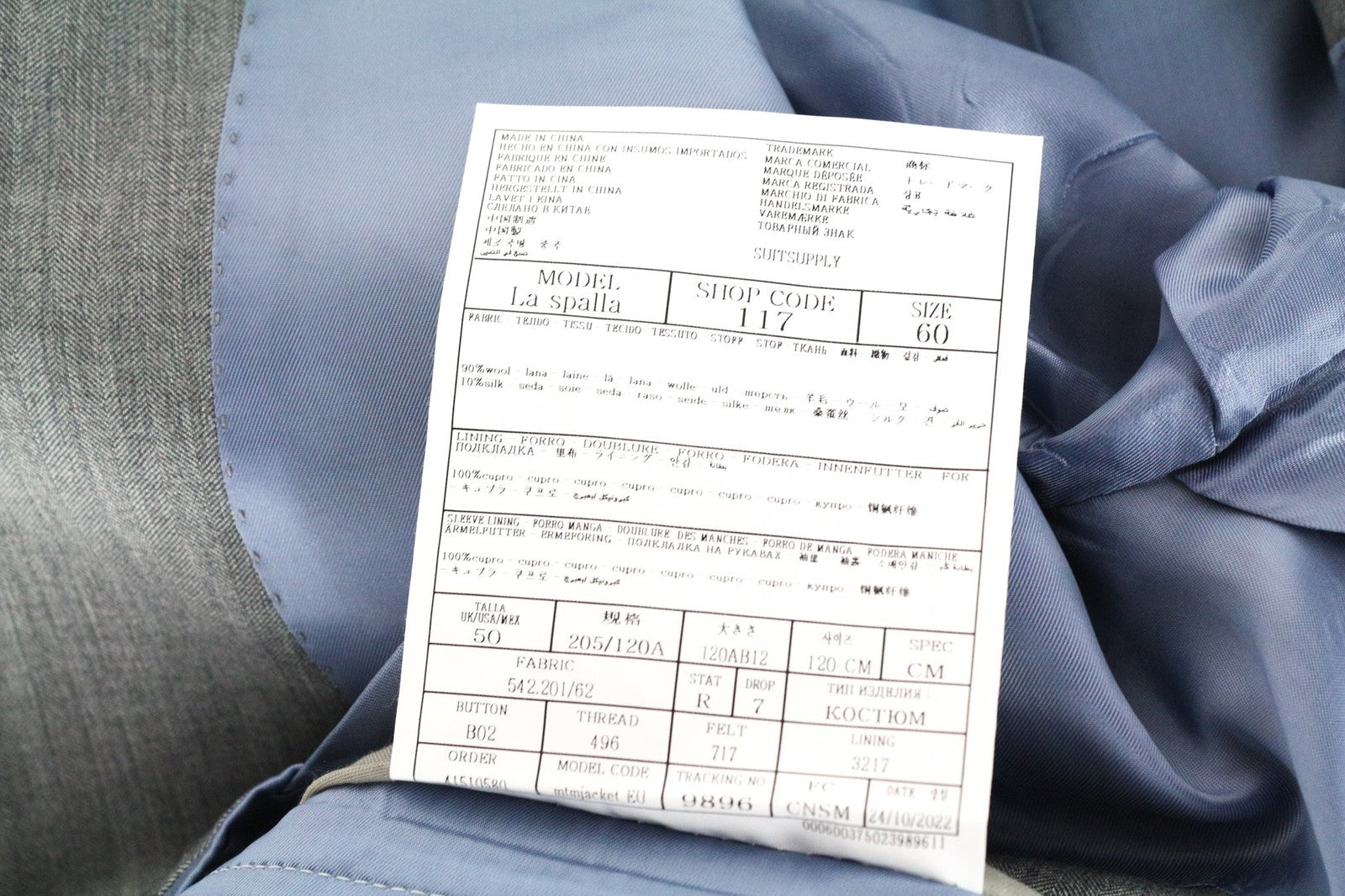 SUITSUPPLY La Spalla vyriškas švarkas UK50R pilkas vilnonis šilkinis švarkas su įpjova atvarte ir dviem sagomis