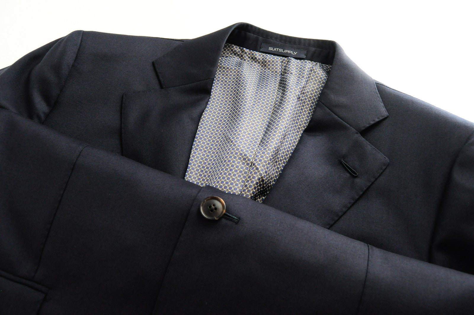 SUITSUPPLY La Spalla vyriškas tamsiai mėlynas švarkas su vilnoniu pamušalu (UK40R) klasikinis oficialios suknelės modelis
