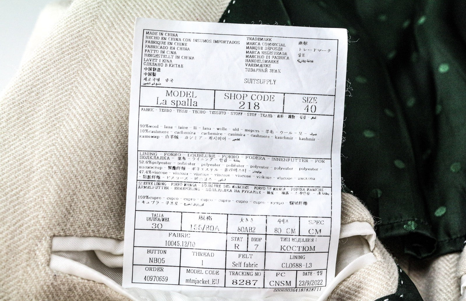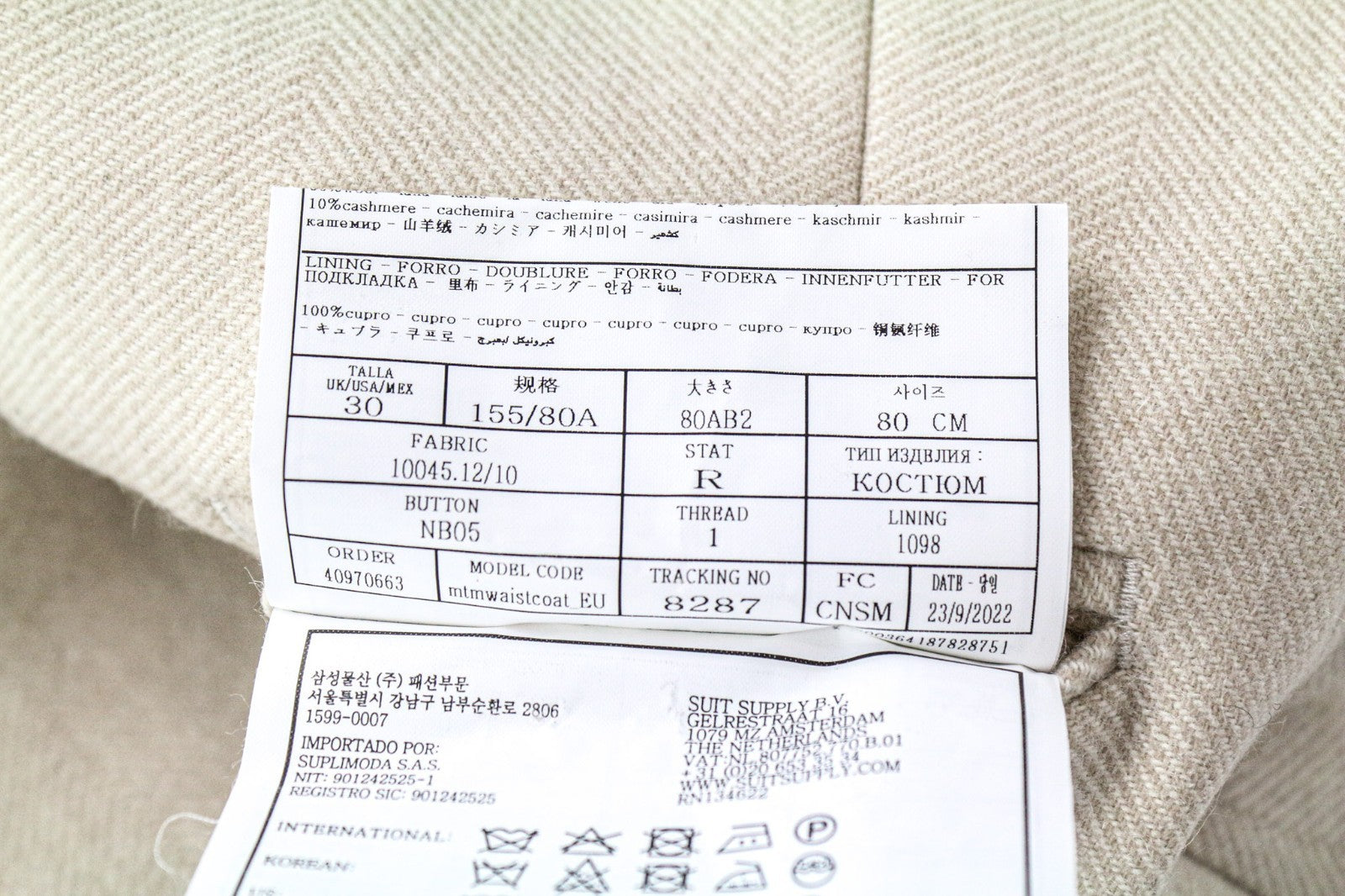SUITSUPPLY La Spalla Men's UK30R Beige Wool Cashmere Blazer & Waistcoat 2 Piece
