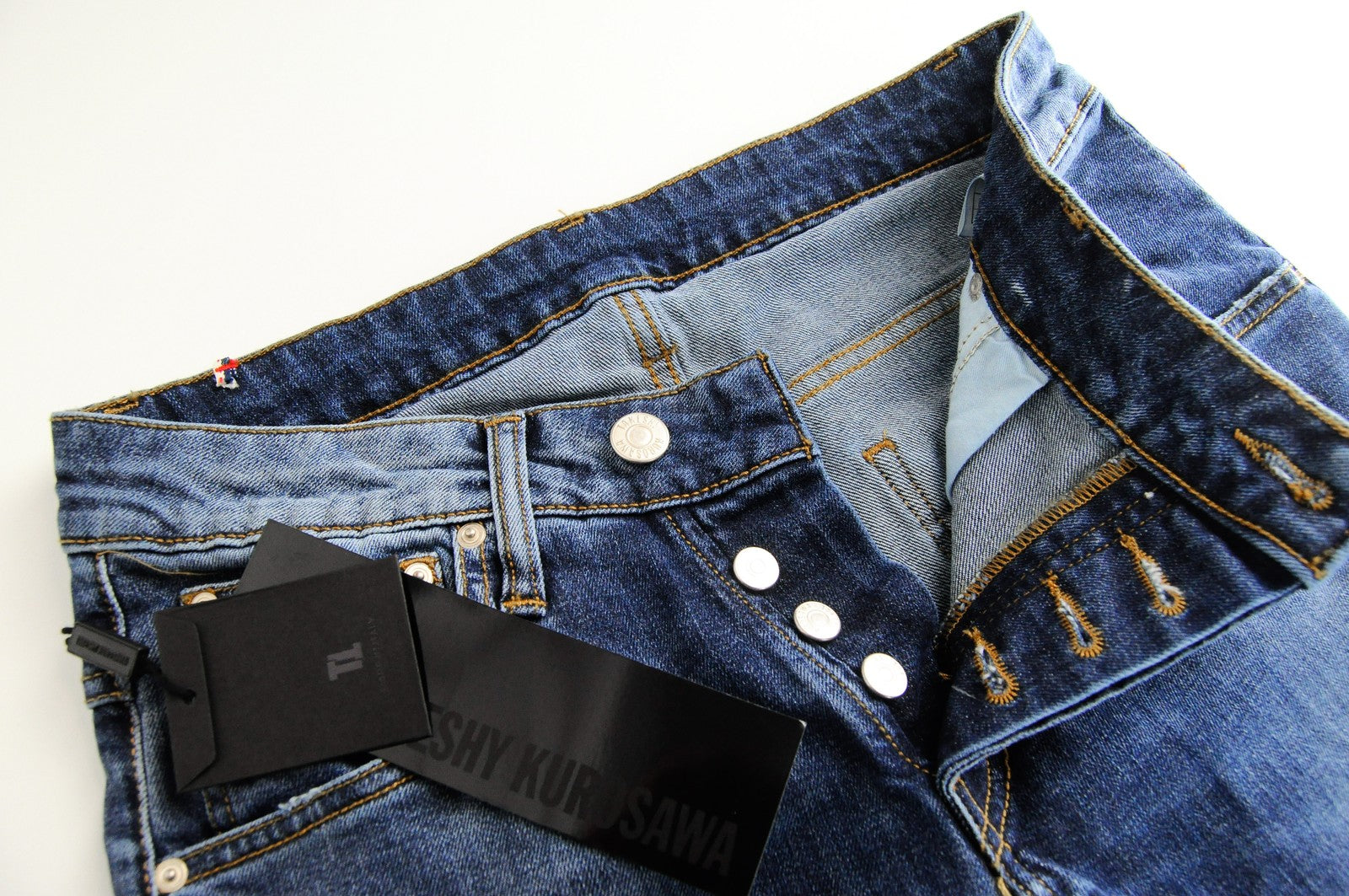 TAKESHY KUROSAWA vyriški džinsai W32 mėlyni, medvilniniai, skalbti, tamprūs, 5 kišenių, įprasti.