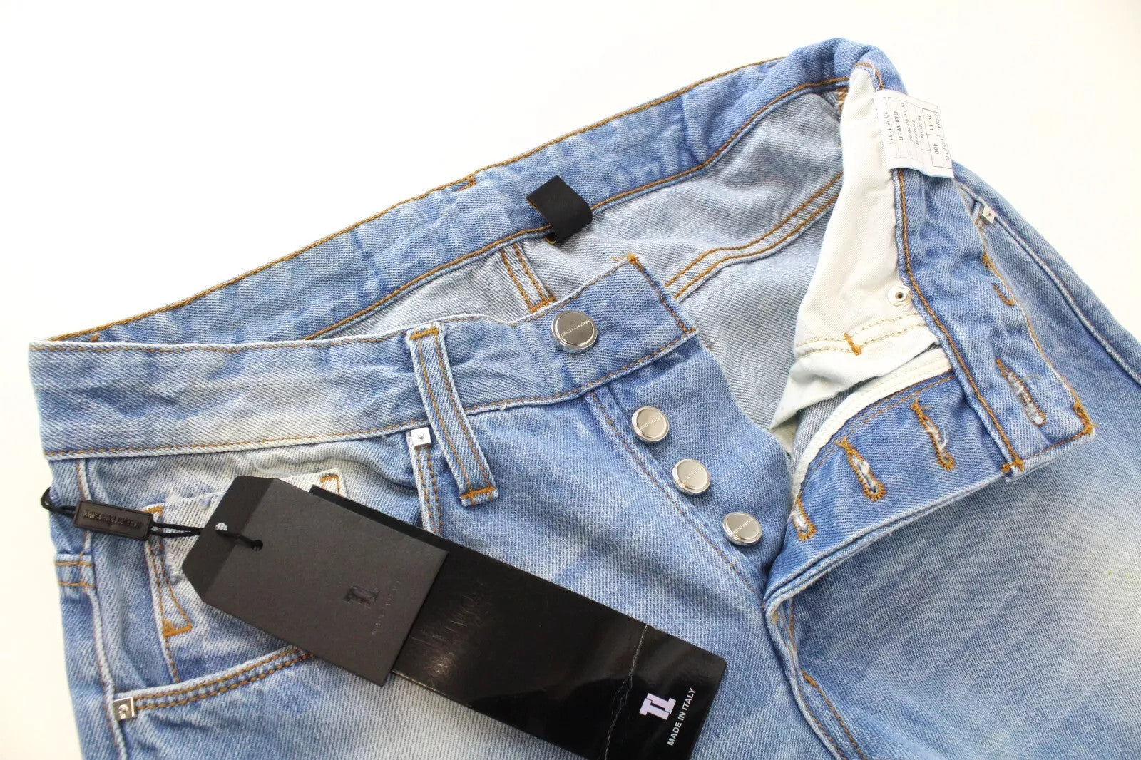 TAKESHY KUROSAWA vyriški džinsai W30 dažyti, dirbtinai nudažyti, ploni, sagomis užsegami džinsai