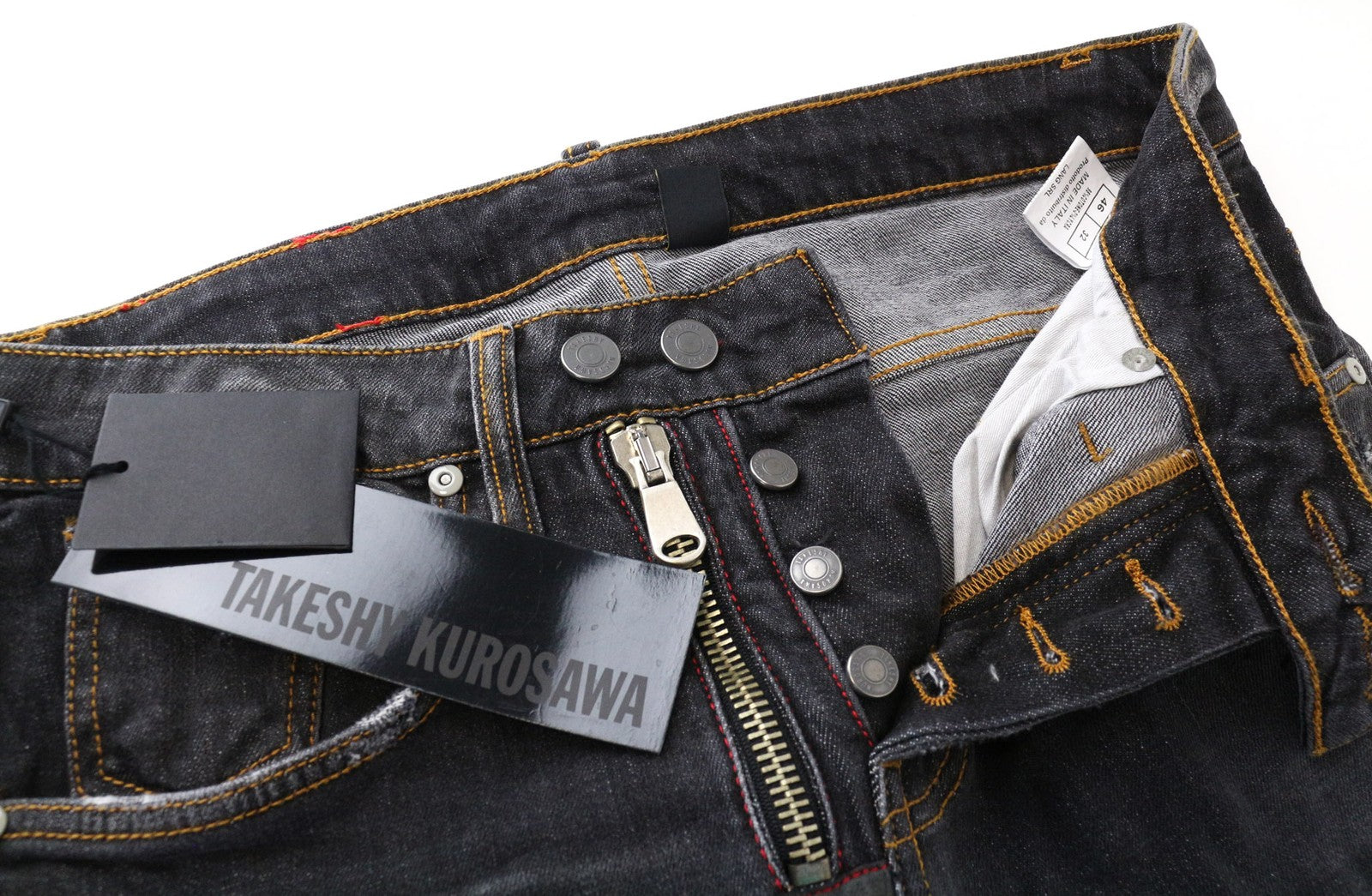TAKESHY KUROSAWA vyriški džinsai W32 Slim pilki dažytos medvilnės tamprūs skalbti džinsai