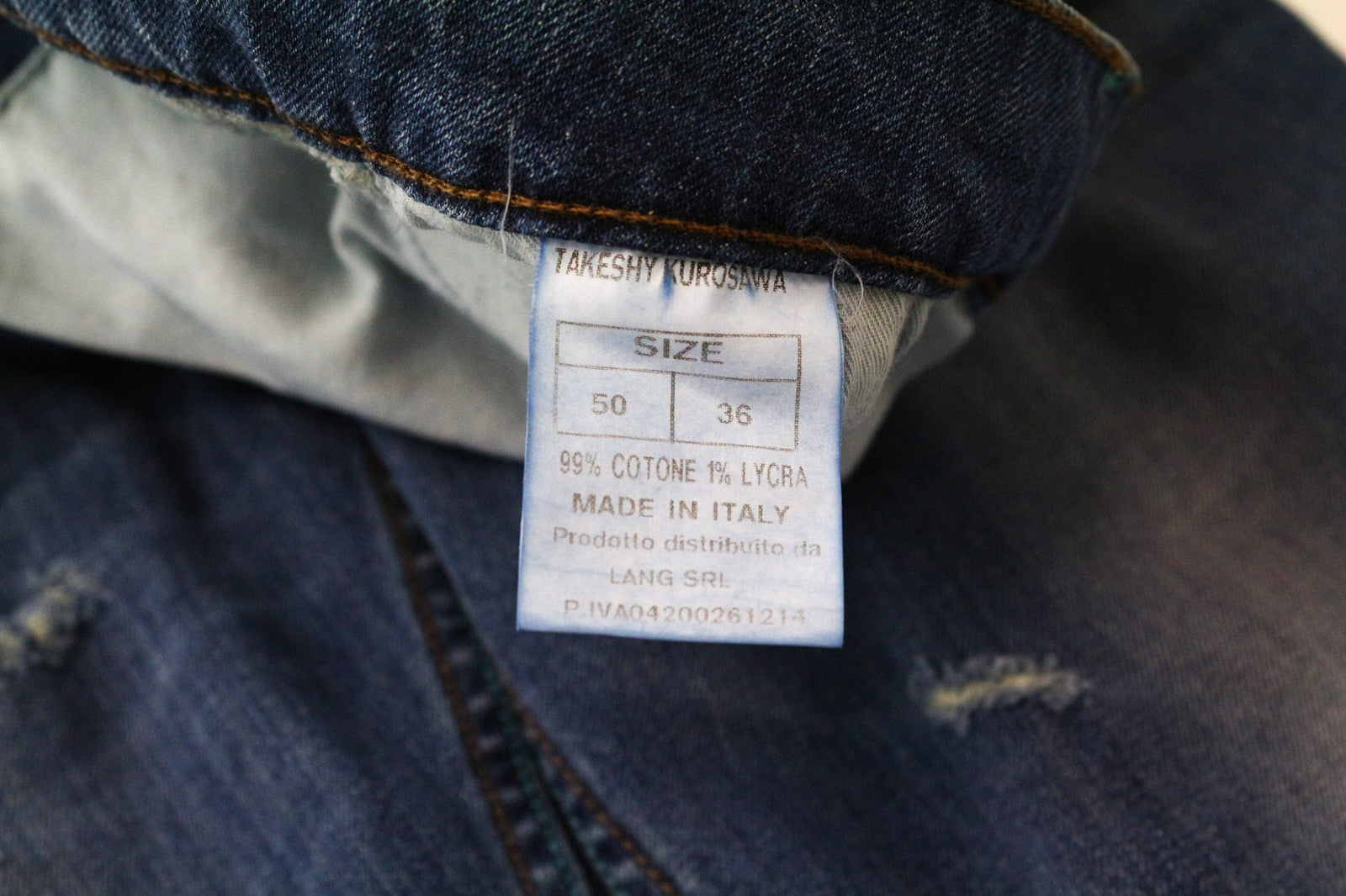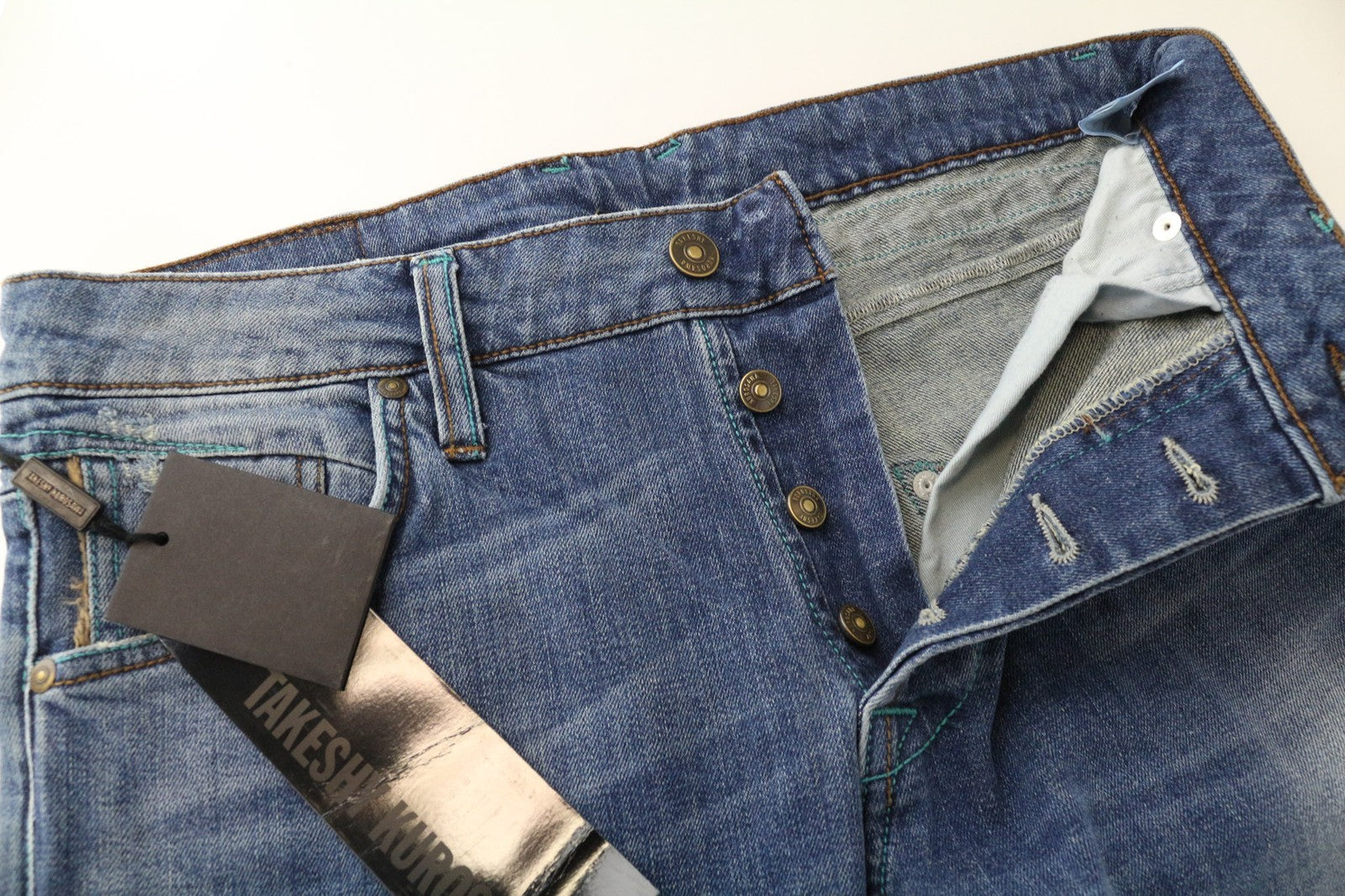 TAKESHY KUROSAWA vyriški džinsai W36 mėlyni, tamprūs, medvilniniai, prigludę, skalbti