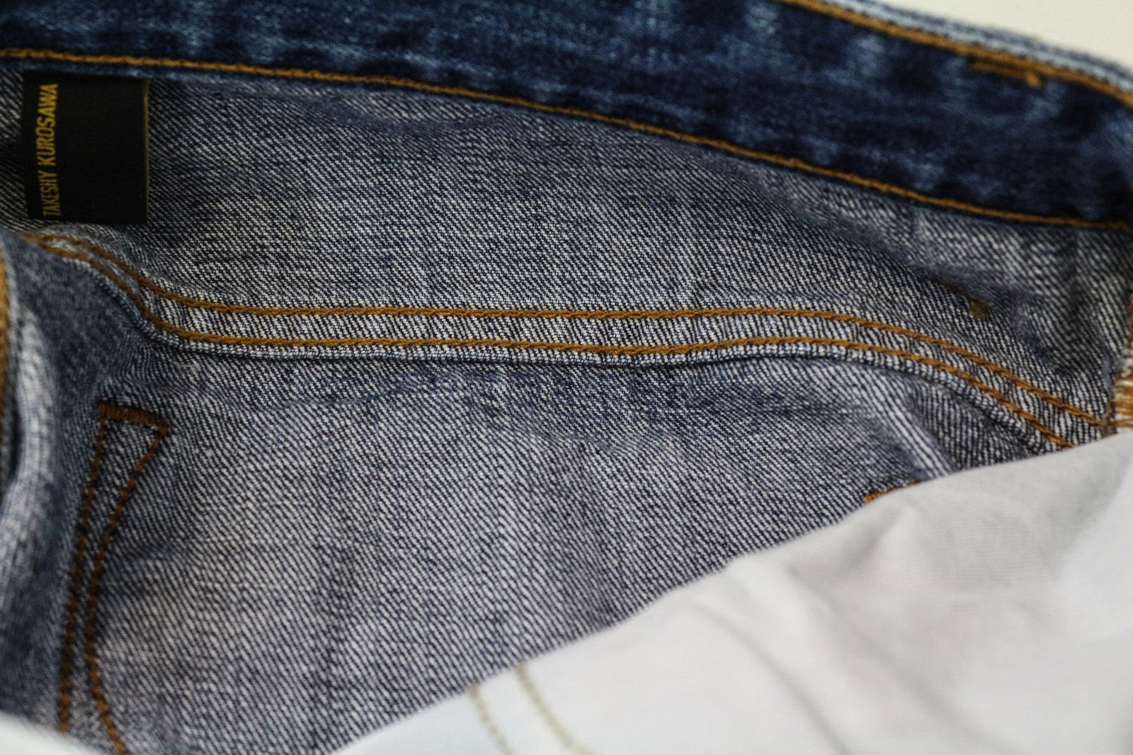 TAKESHY KUROSAWA TK 08 vyriški džinsai W34 mėlyni, netempiami, ploni, aptempti