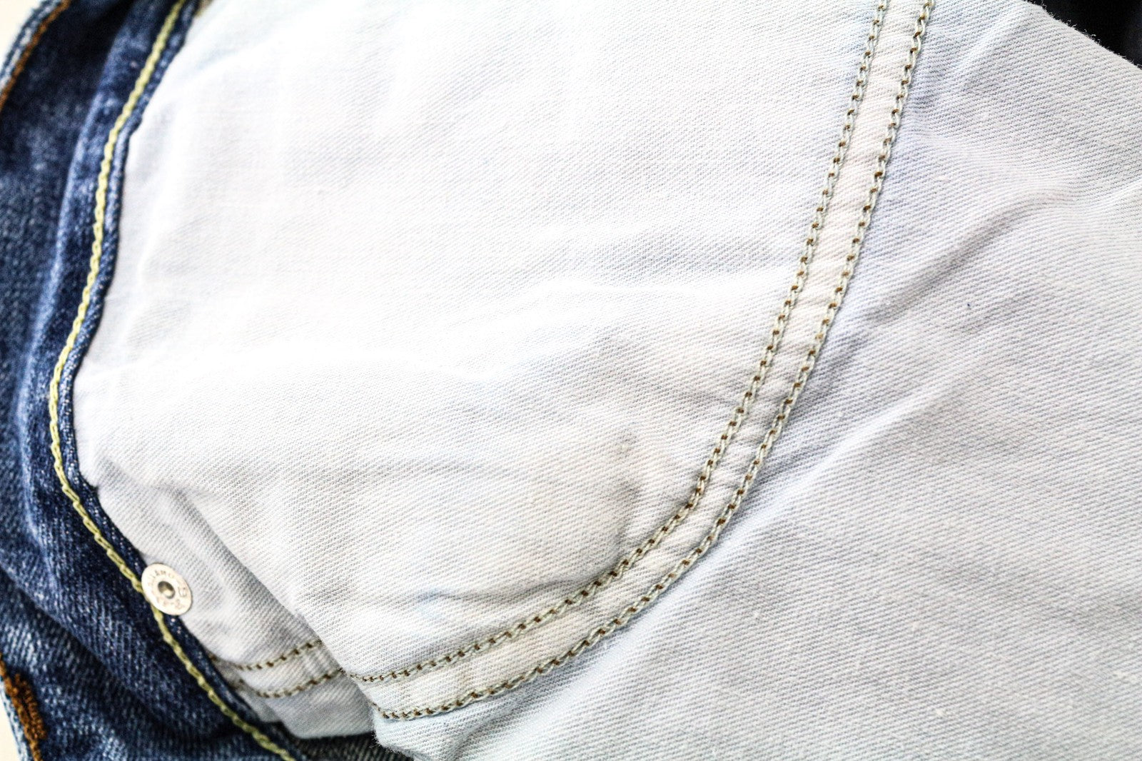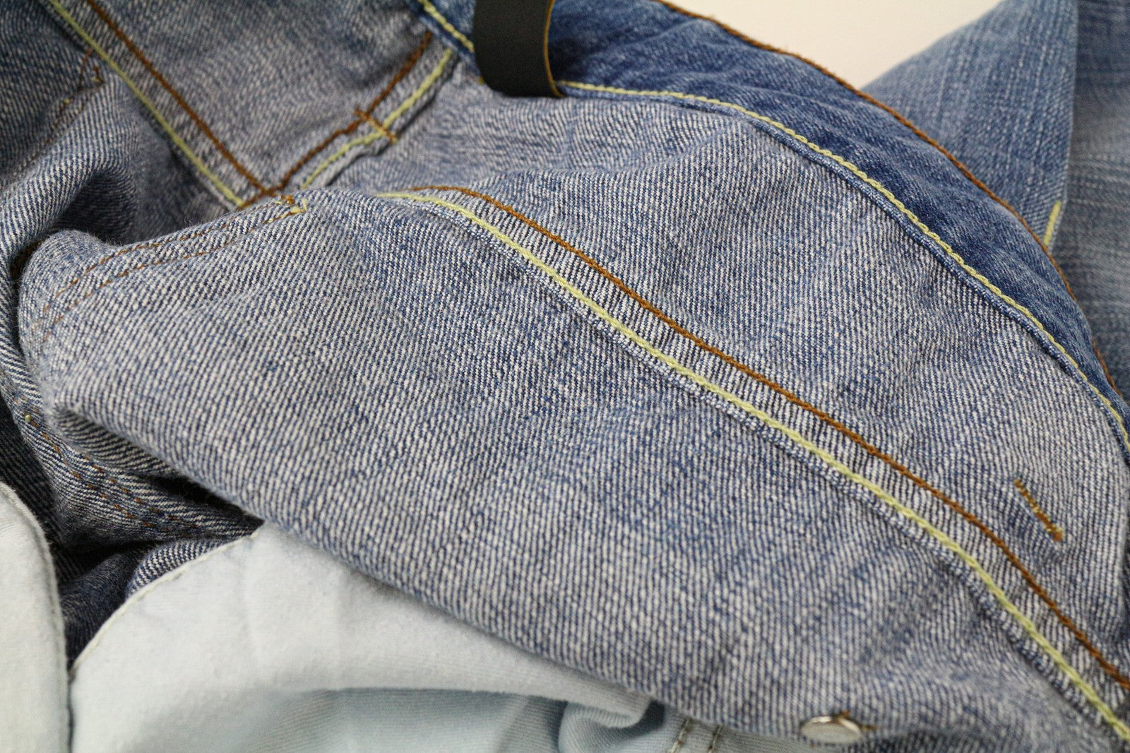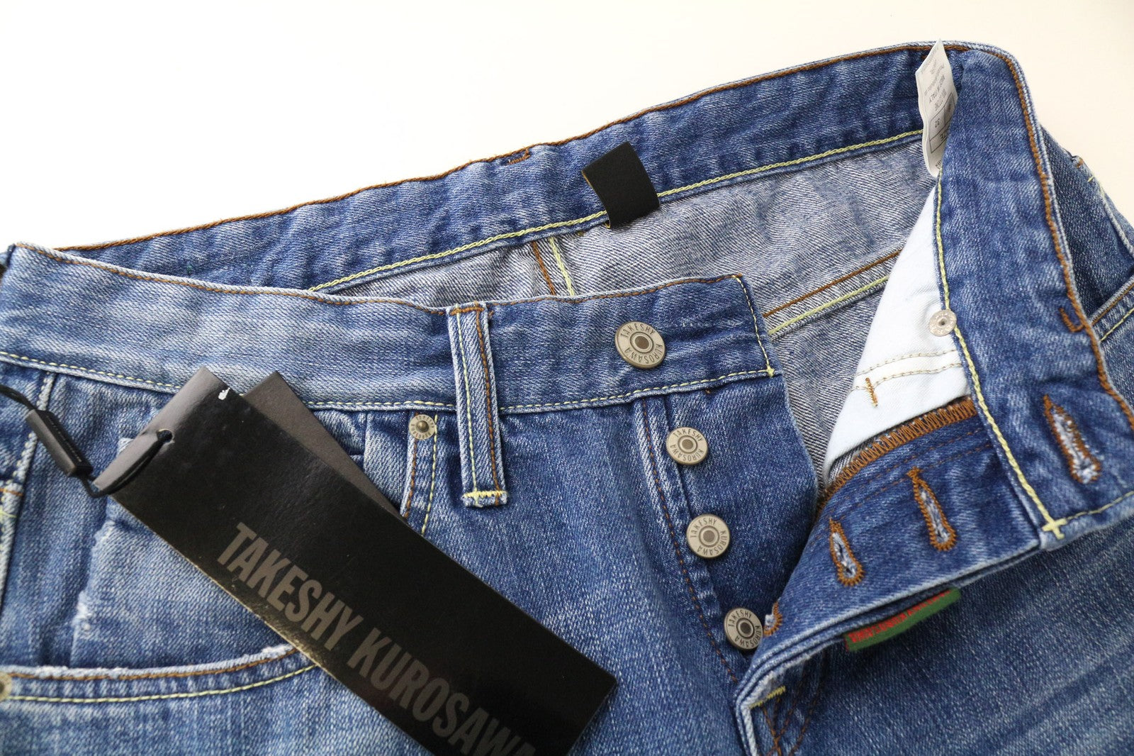 TAKESHY KUROSAWA TK 72 vyriški džinsai W32 mėlyni dažai Slim Distres netempimo kirpimo