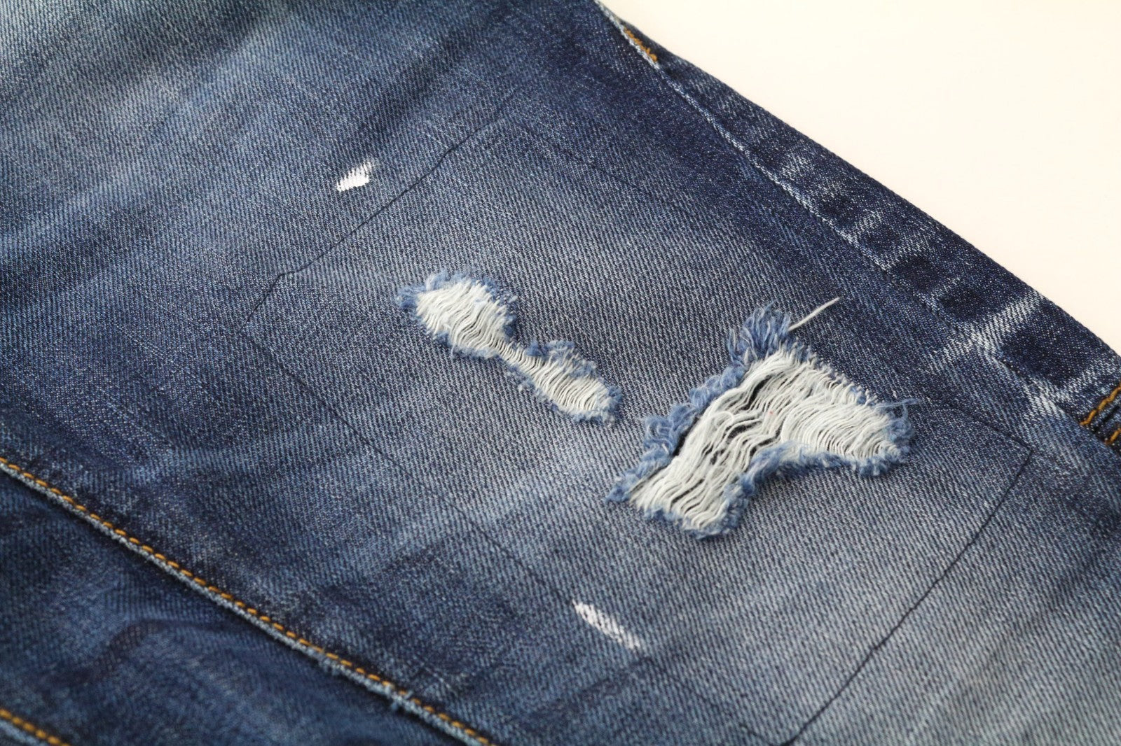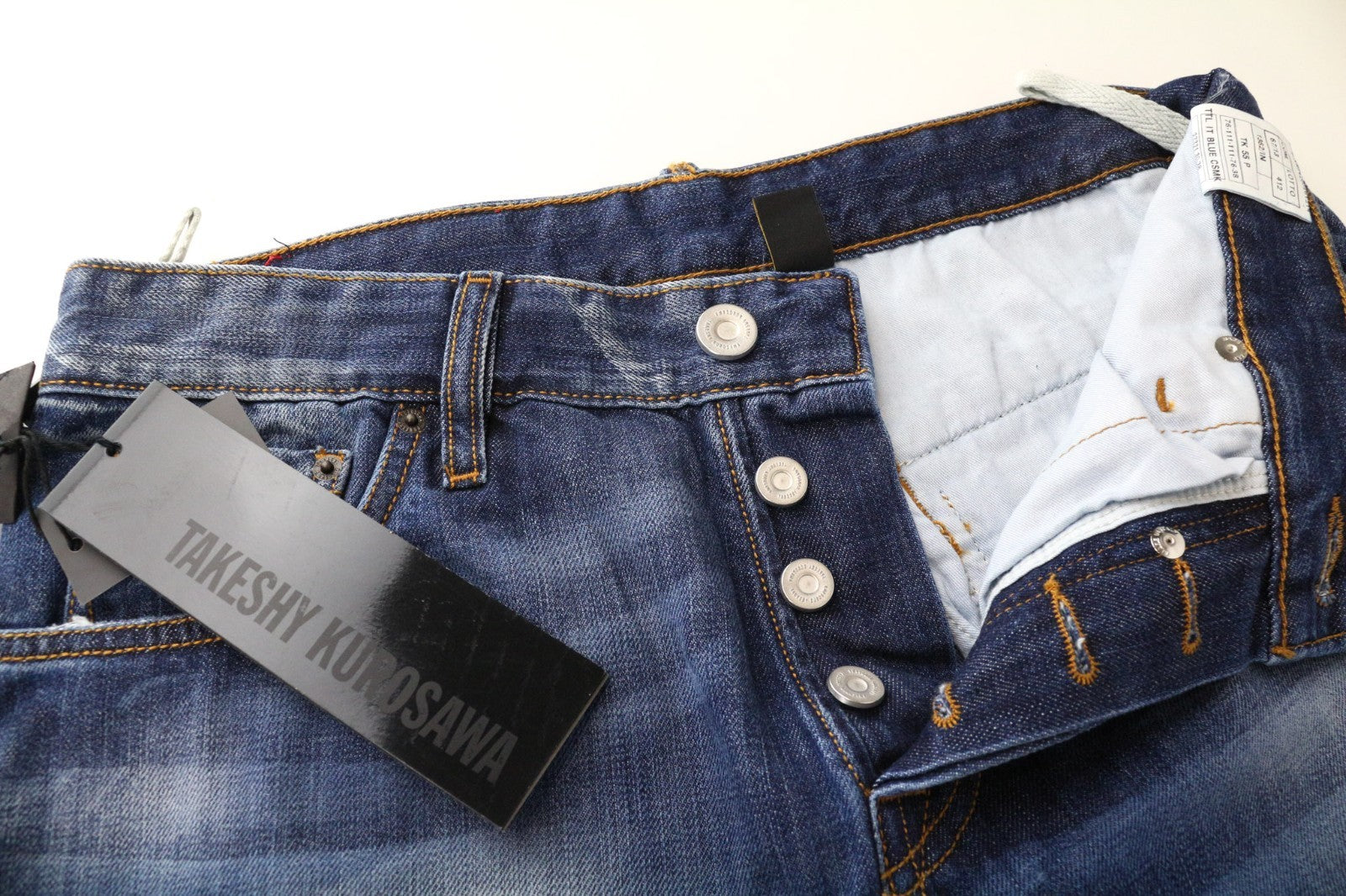 TAKESHY KUROSAWA TK55P vyriški džinsai W30 mėlyni, siaurėjantys, apdriskę, sagomis