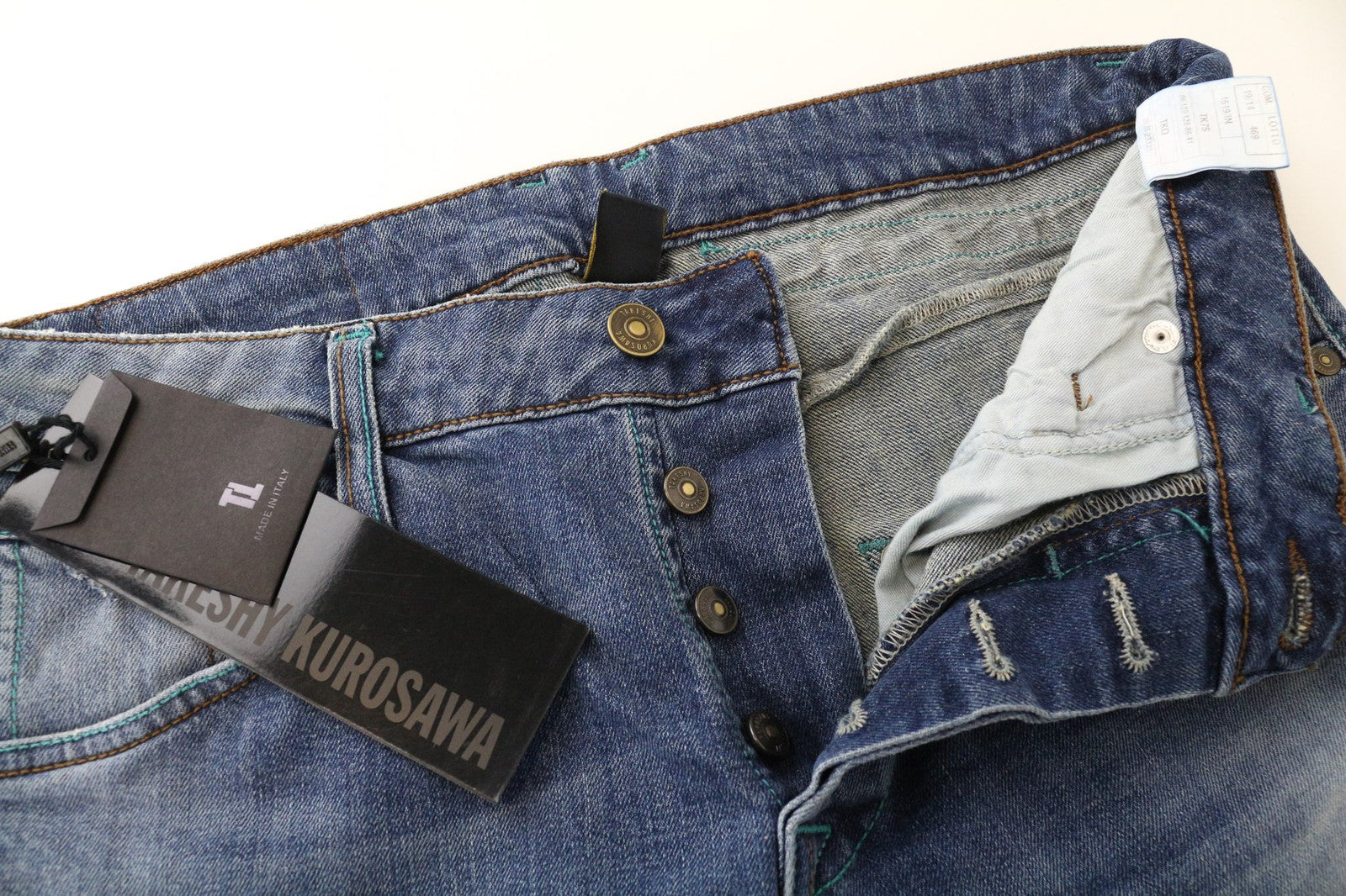 TAKESHY KUROSAWA TK75 vyriški džinsai W34 Slim mėlyni, tamprūs, su sagomis