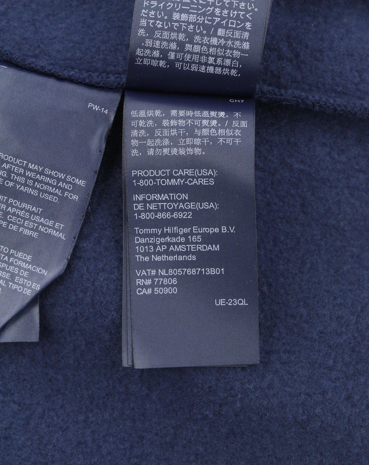 TOMMY HILFIGER College Wash vyriškas džemperis su gobtuvu L tamsiai mėlynas kengūros kišenės megztinis