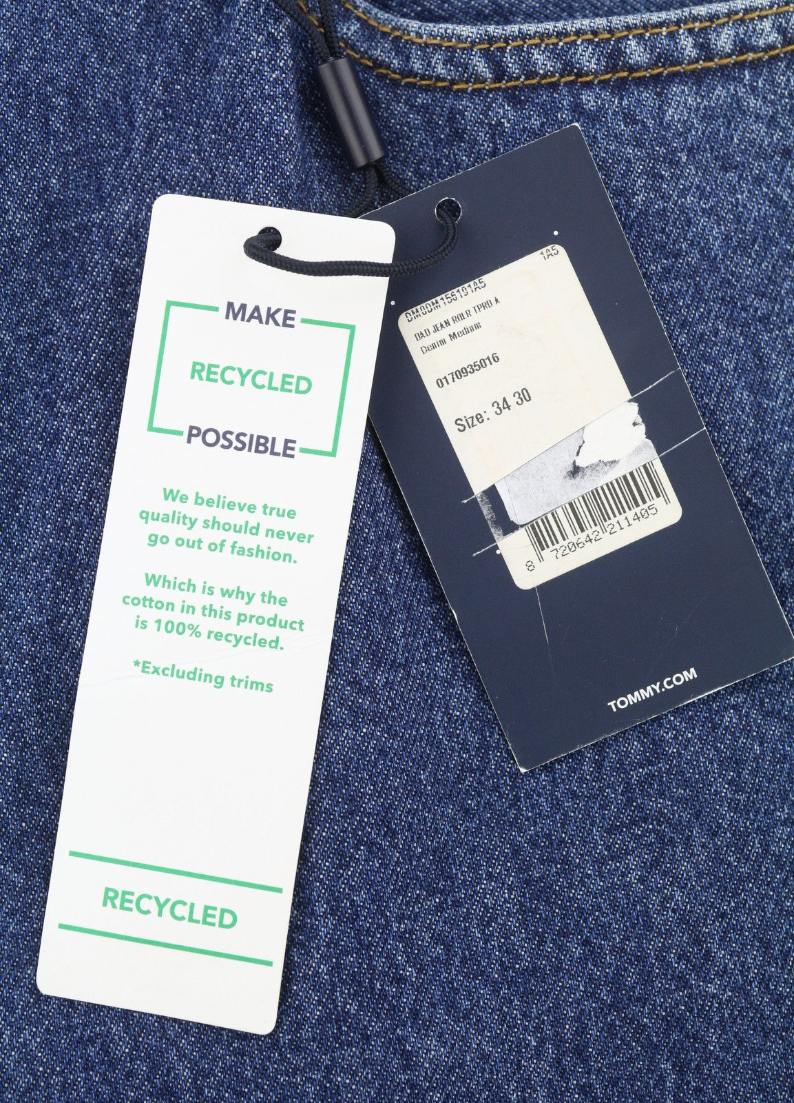 TOMMY HILFIGER Dad Men Jeans W34/L30 Blue Regular Tapered Straight Zip Fly Denim