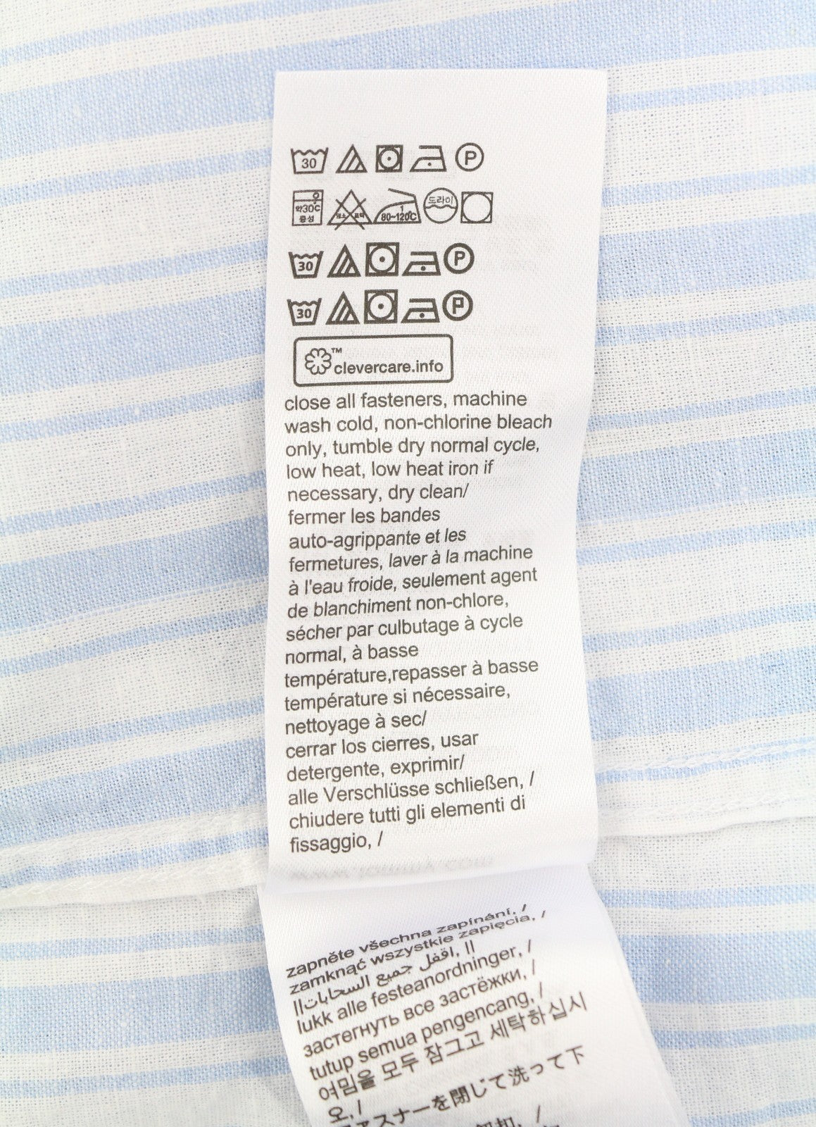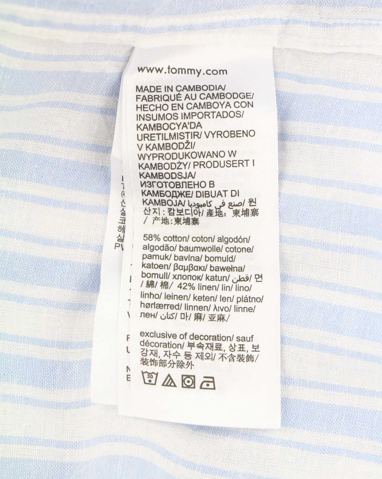 TOMMY HILFIGER Mao Stripe Linen Men Shirt M Blue Mandarin Neck Patch Pocket