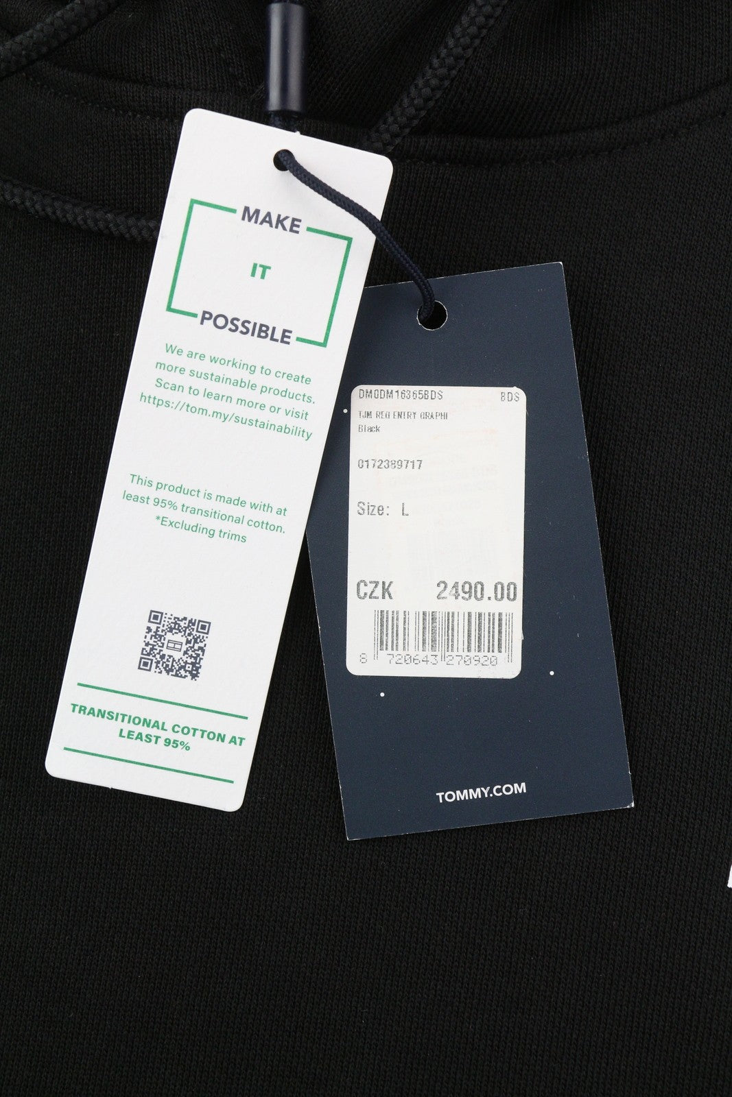 TOMMY HILFIGER Men's Regular Graphic Hoodie L Black Pull On Kangaroo Pocket
