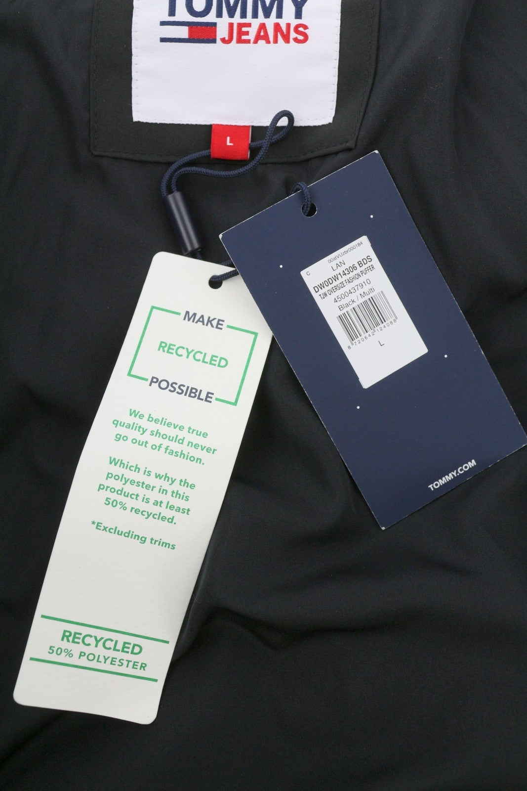 TOMMY HILFIGER Oversize Fashion Puffer Women Jacket L Black Duck Down RRP289