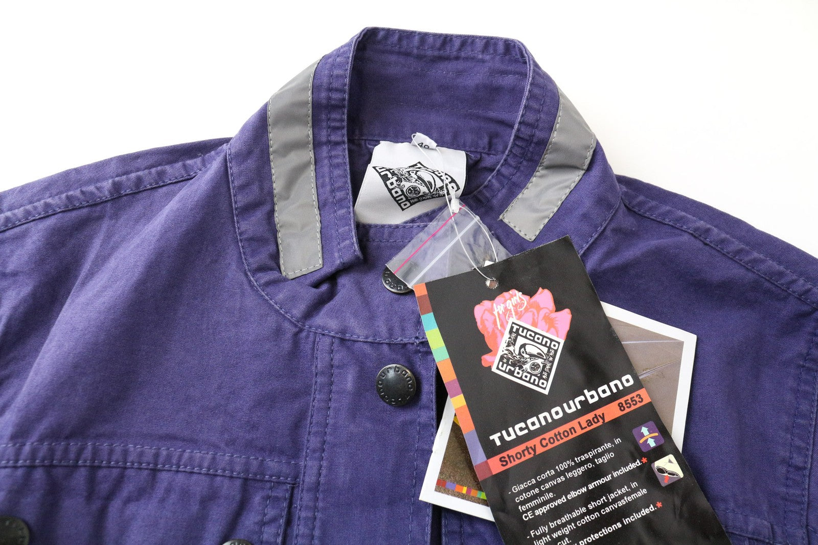 TUCANO URBANO trumpa moteriška striukė IT40 violetinė medvilninė lengva baikerių striukė su užtrauktuku
