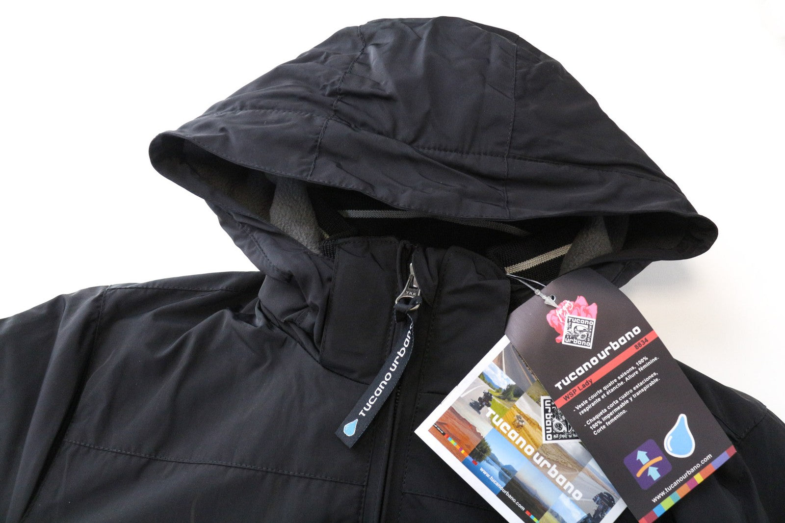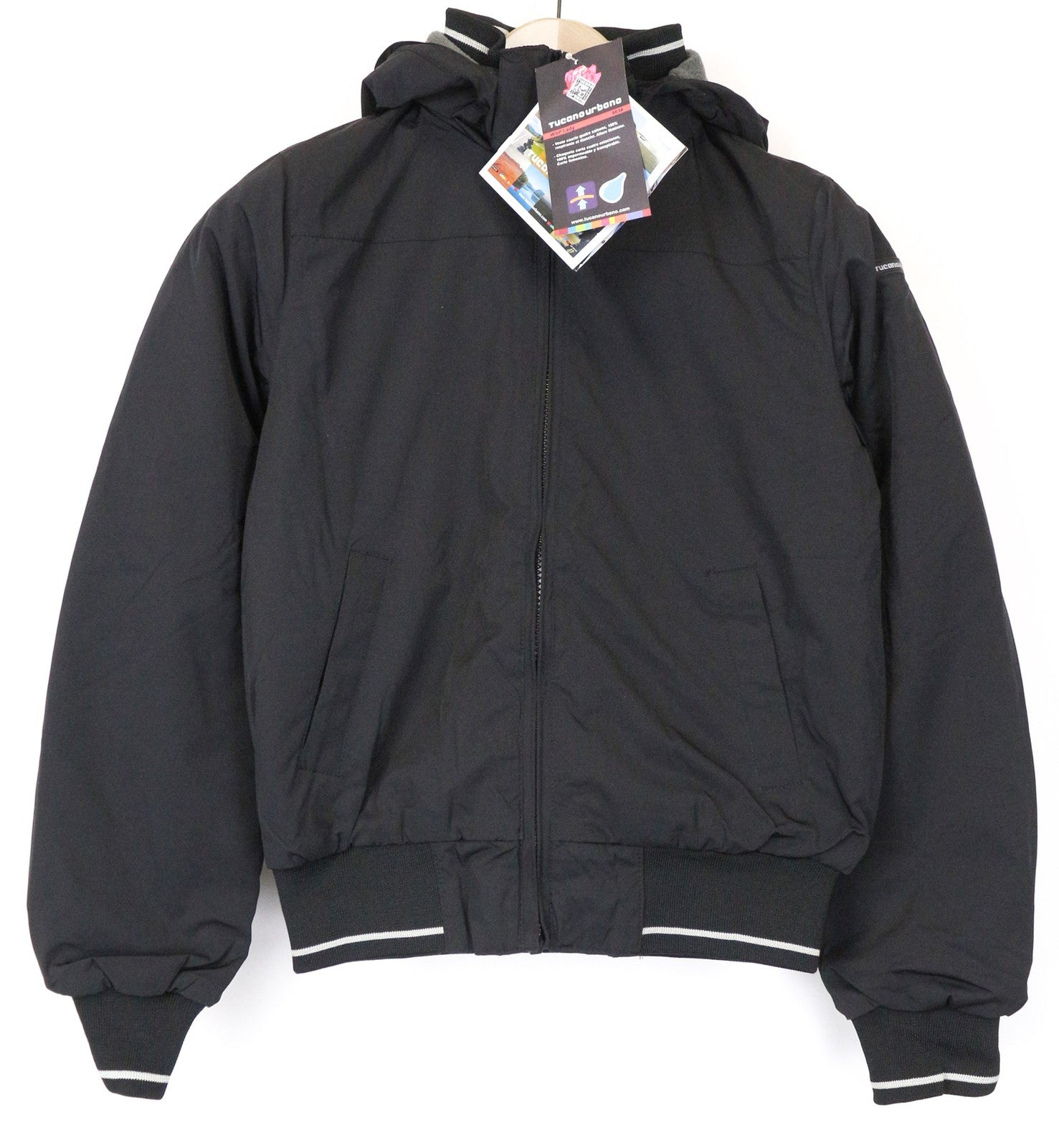 TUCANO URBANO WSP moteriška moteriška striukė IT40 juoda su gobtuvu ir vandeniui atspariu užtrauktuku
