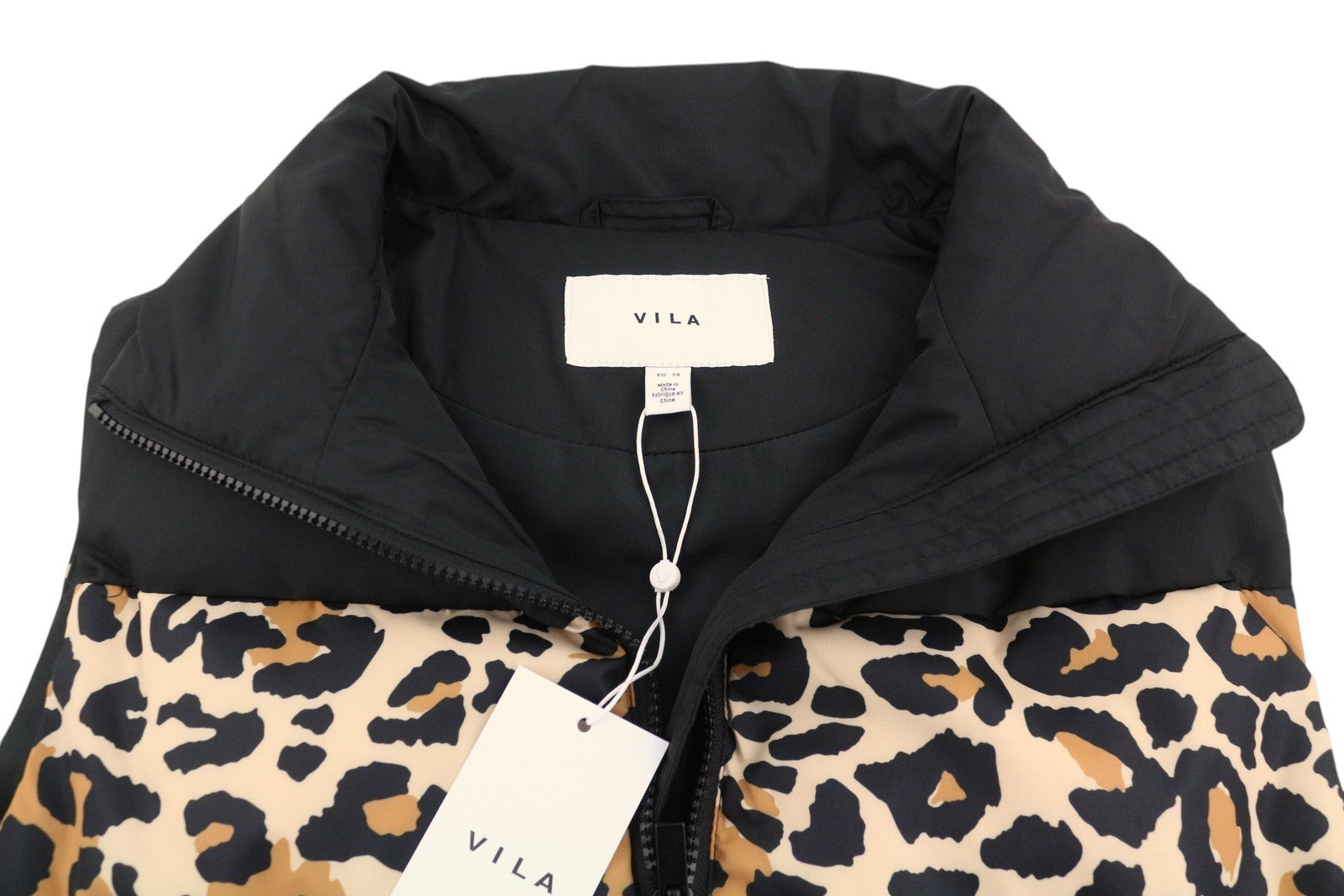 VILA Maja High Neck Women Waistcoat EU34 Black Leopard Print Quilted Padded