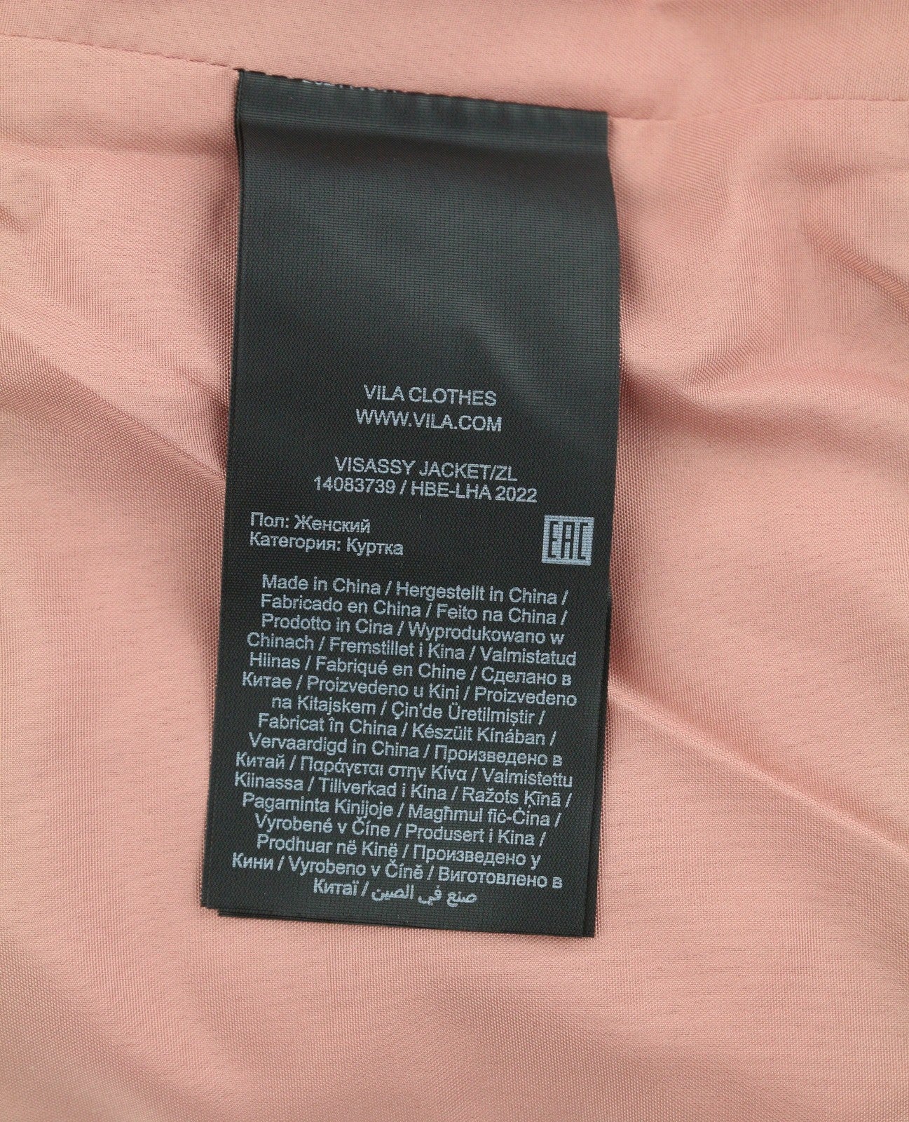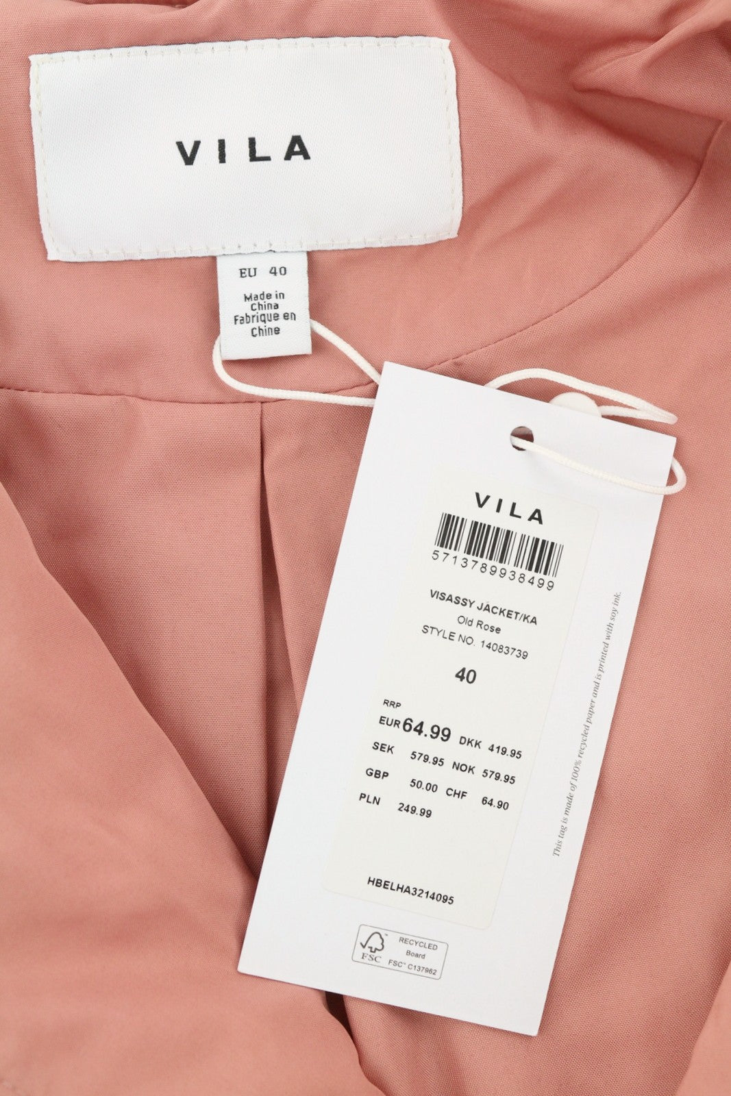 VILA Sassy Women Jacket EU40 Pink Quilted Padded Asymmetrical Zip Lightweight