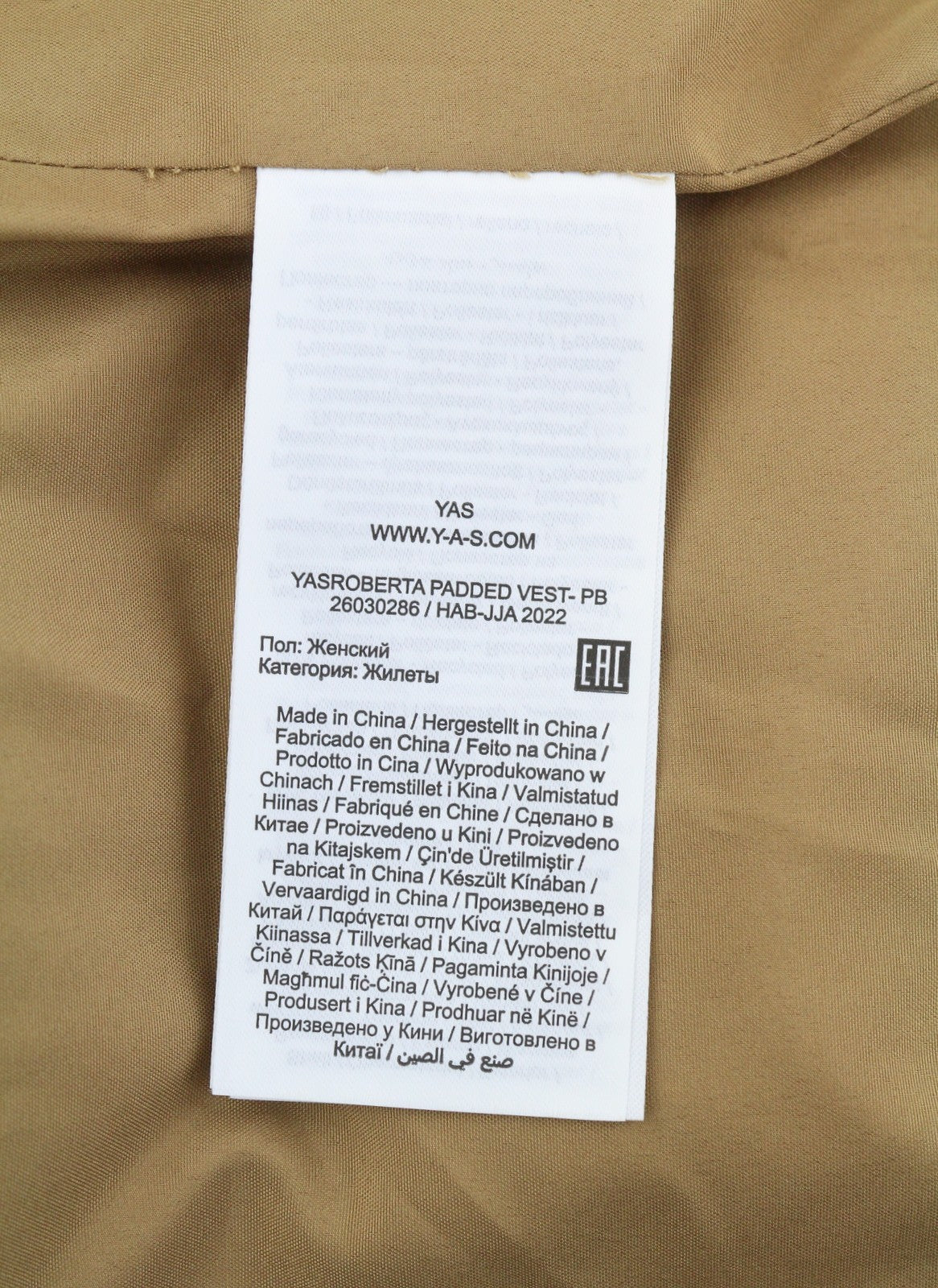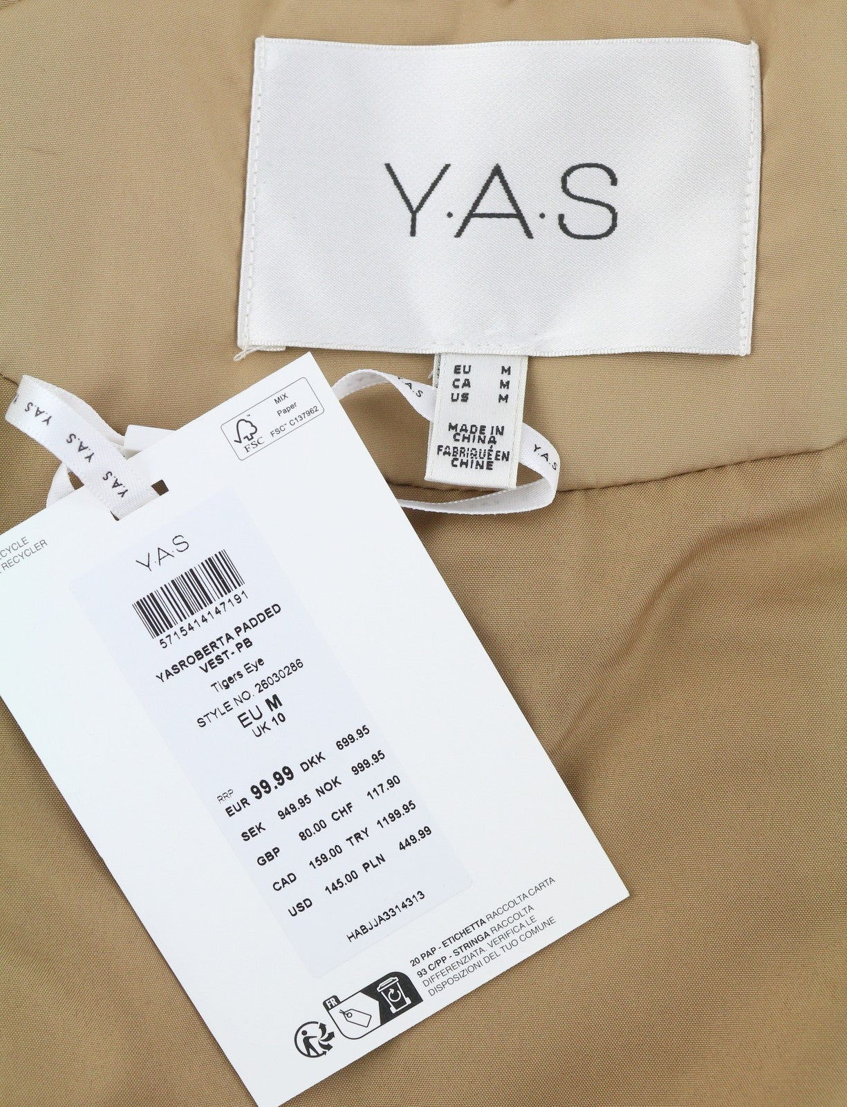 YAS Roberta Padded Women Waistcoat M Brown Quilted High Neck Full Zip Vest