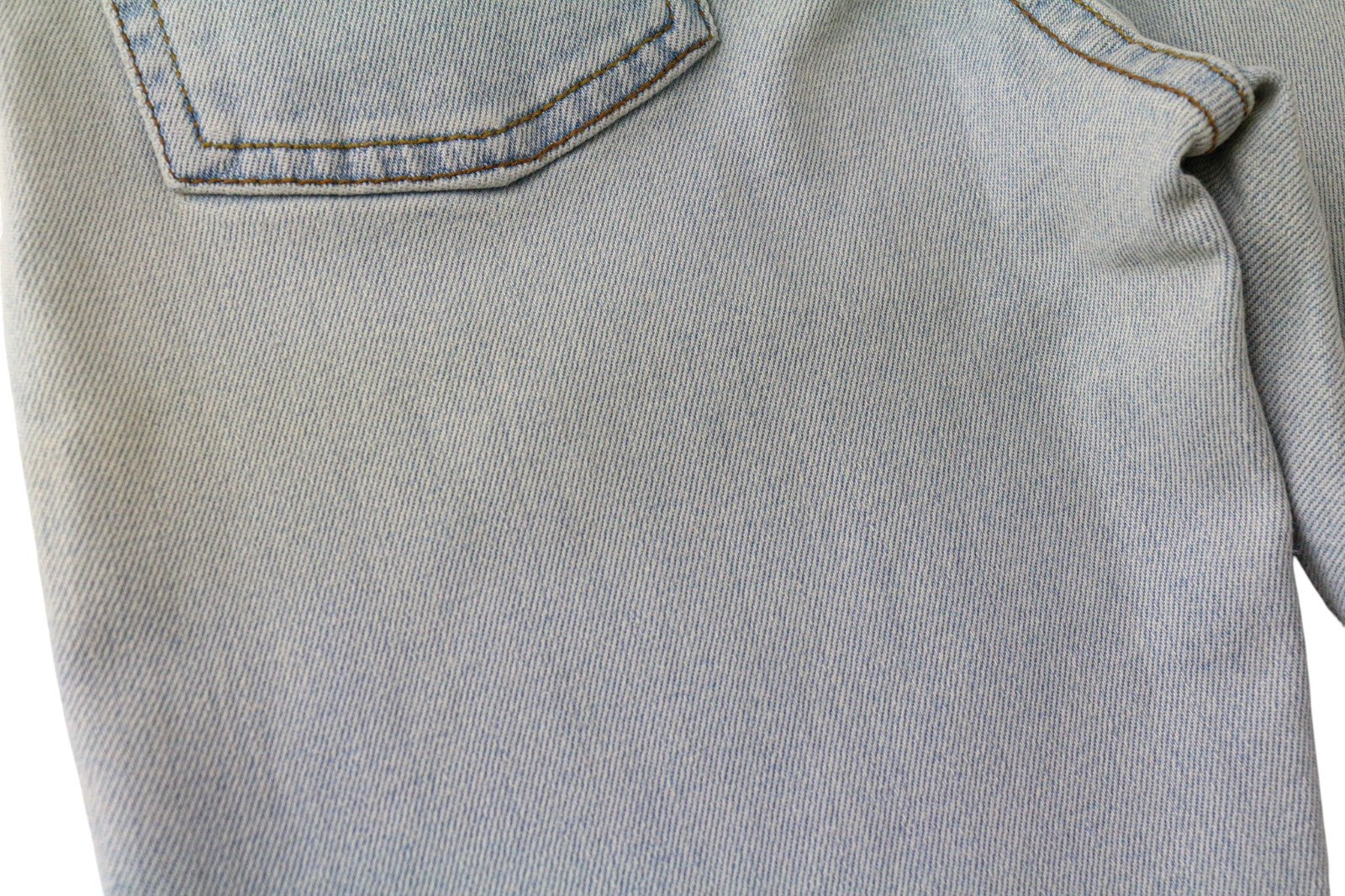 Faded marks on the front and back, stain on the right leg. Please see added photos.