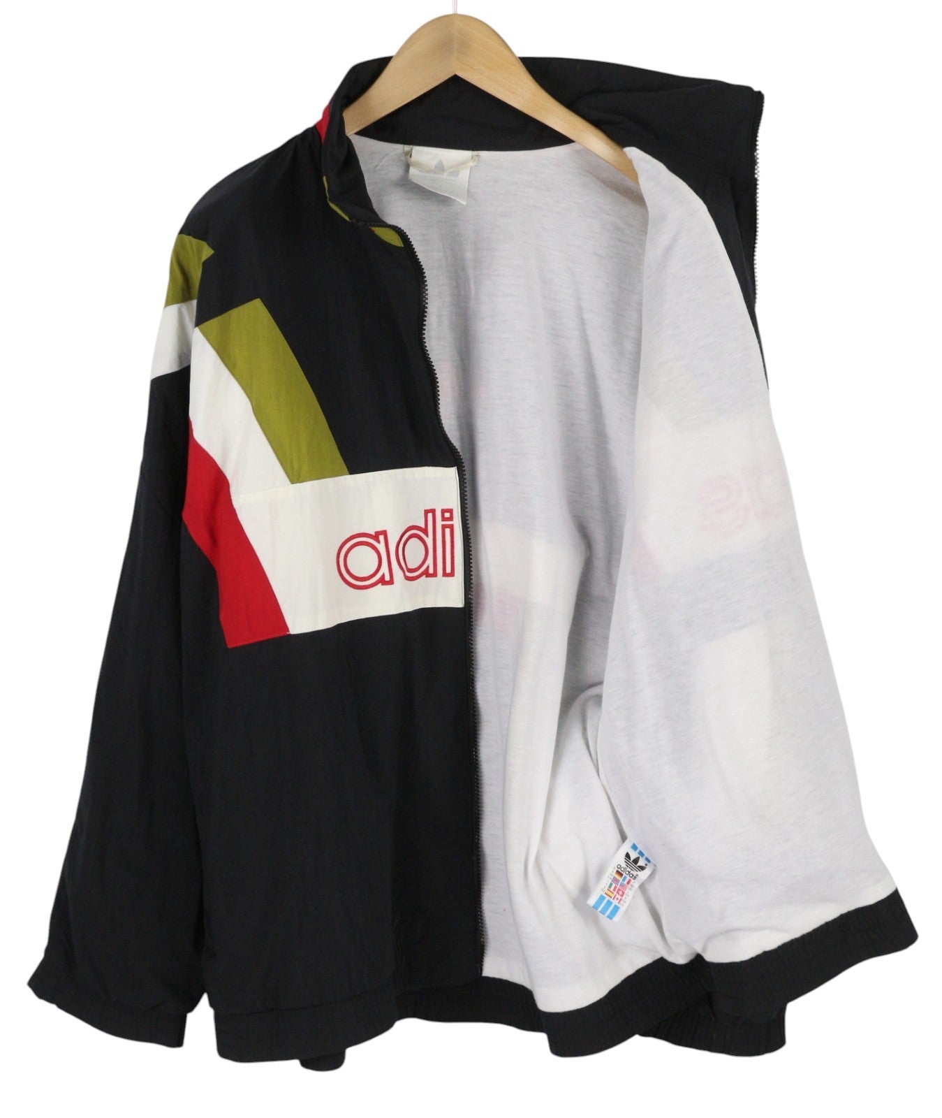 ADIDAS Men Jacket UK44/46 Vintage Black Full Zip Lined Front Logo Lightweight