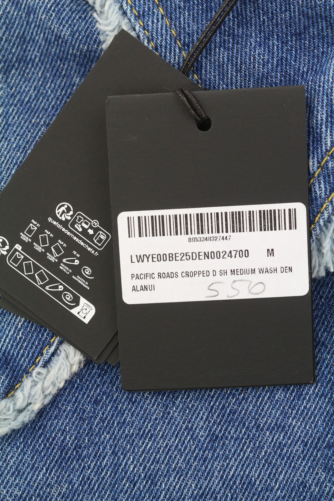 ALANUI Pacific Roads Cropped Denim Women Shirt M Blue Distressed Hems RRP815