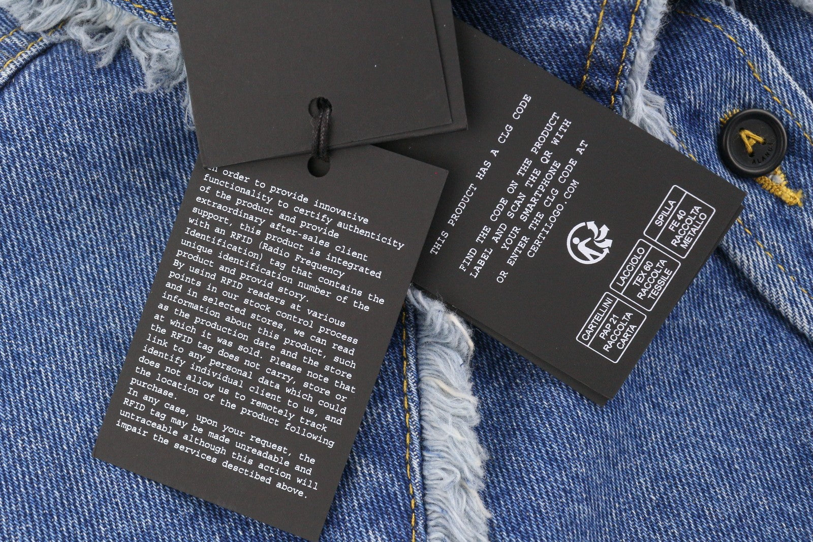 ALANUI Pacific Roads Cropped Denim Women Shirt S Blue Distressed Hems RRP815