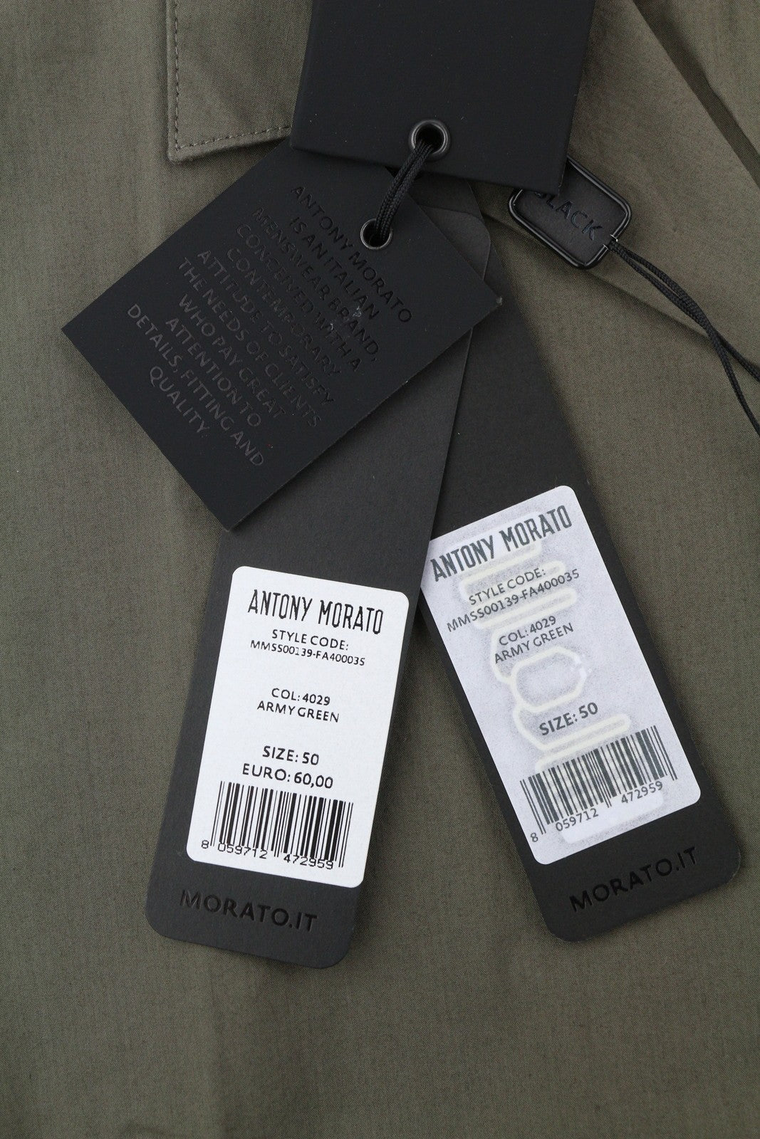 ANTONY MORATO Straight Fit Men Shirt L Army Green Notch Button-Up Short Sleeve