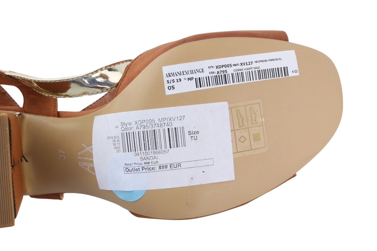 ARMANI EXCHANGE XDP005 Women Sandals EU37 Brown Shiny Leather Details Block Heel